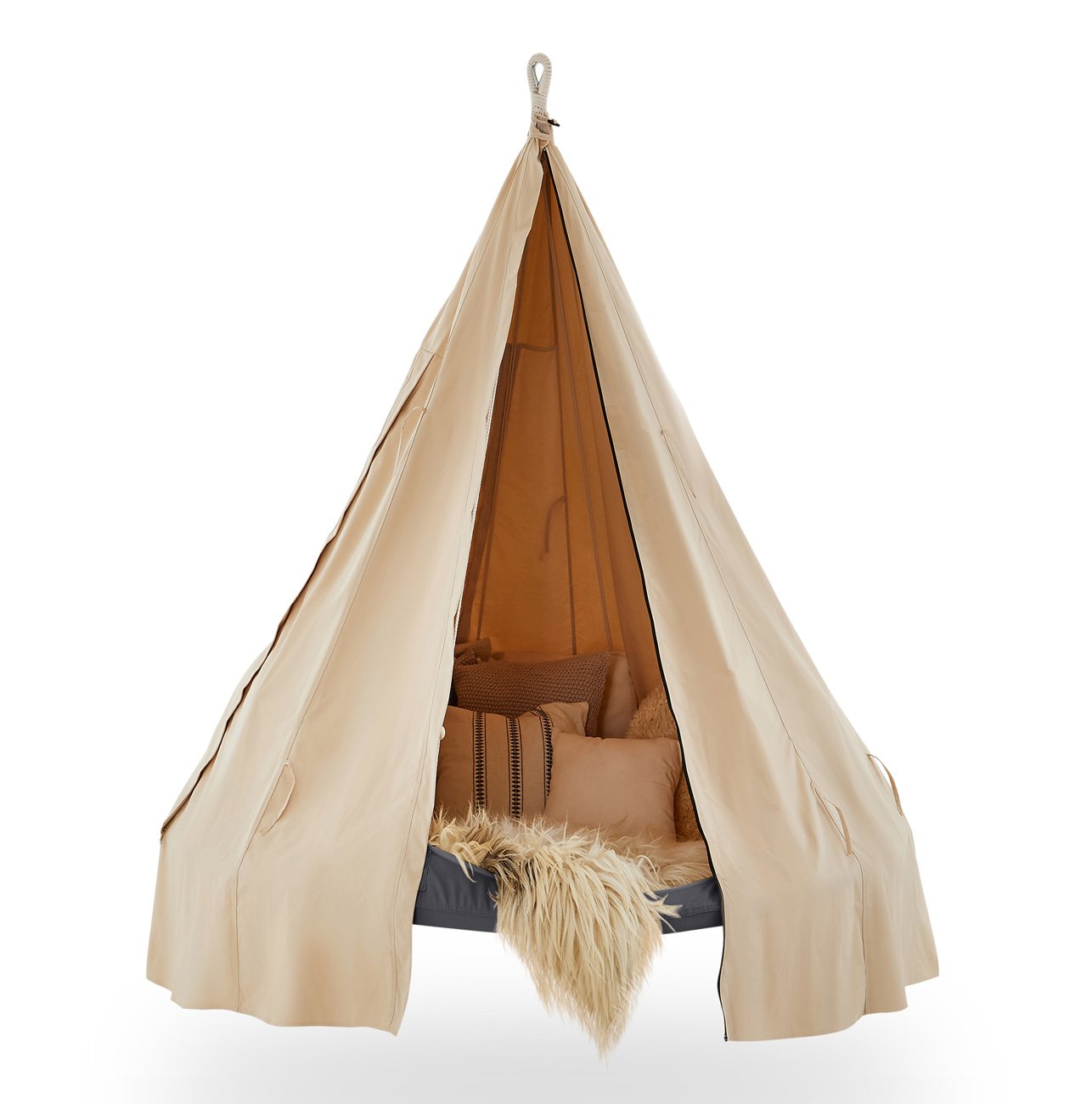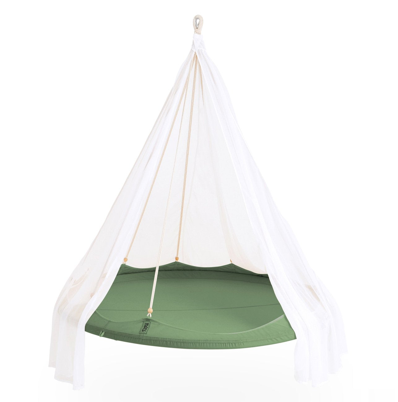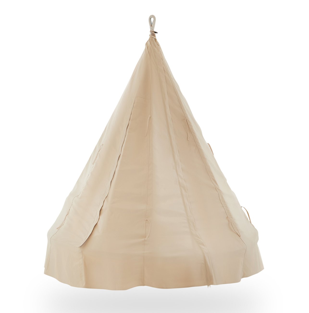 Designed with high-quality soft poly-cotton canvas, macramé finishing touches, and a cosy attachable white sheer net.