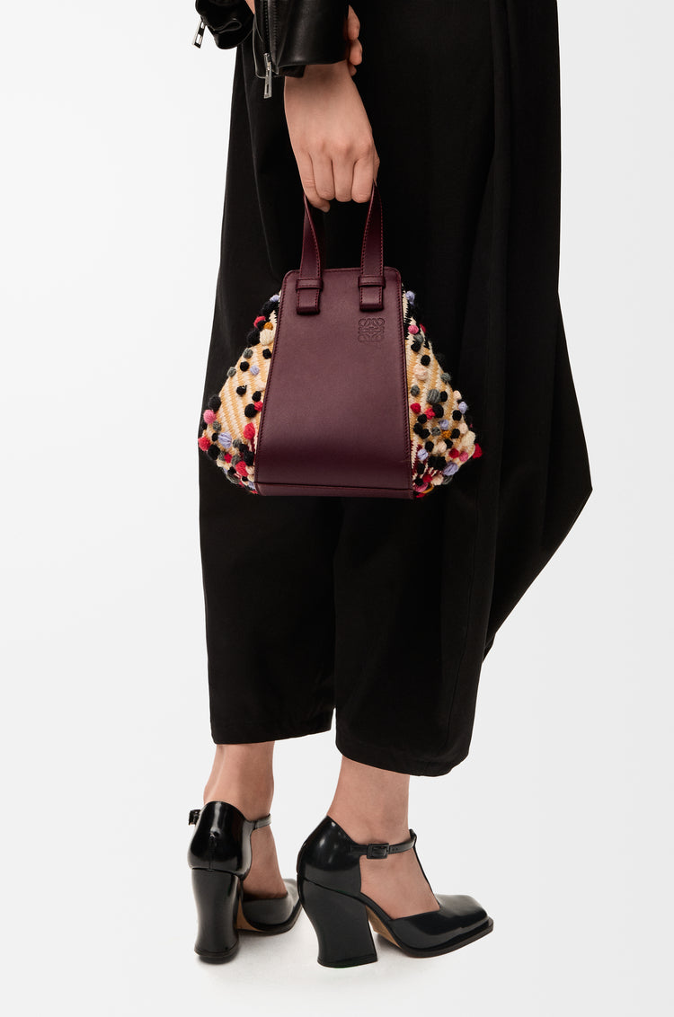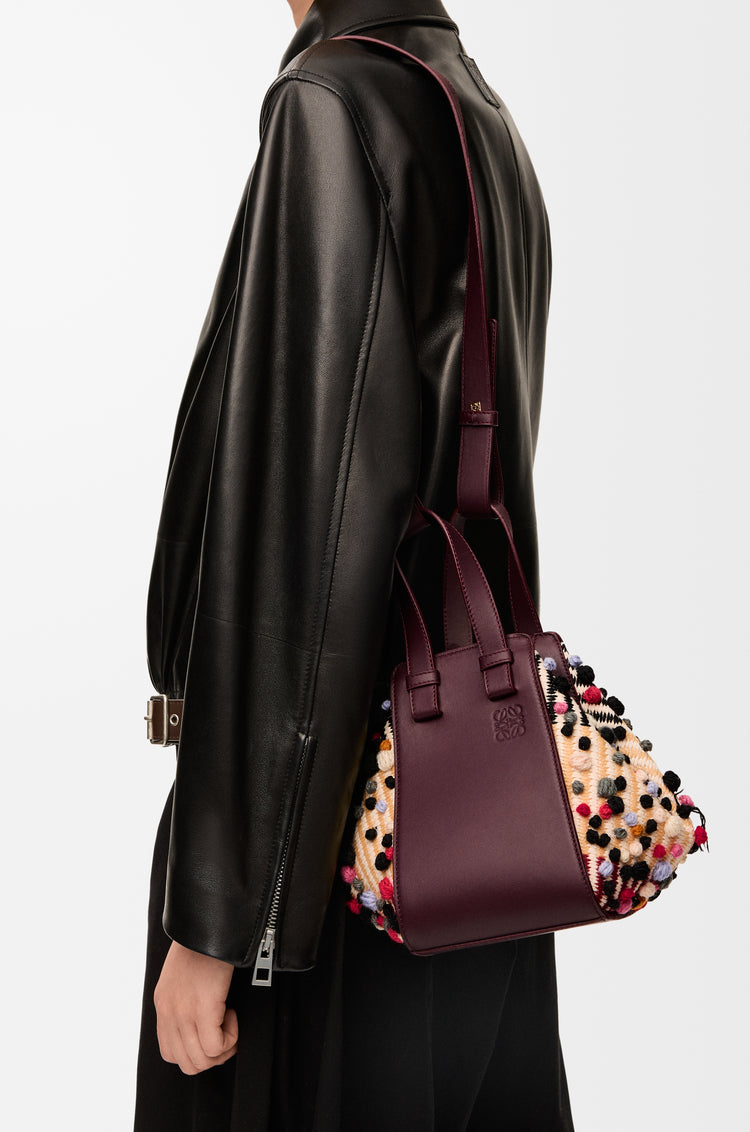 The Hammock is a versatile design whose flexible sides fold in and out to create distinctive silhouettes. This compact version is crafted in cotton based jacquard hand-embroidered with 3D wool dots inspired by Anni Albers's "Dotted" tapestry. This bag is part of the LOEWE x Albers collection.