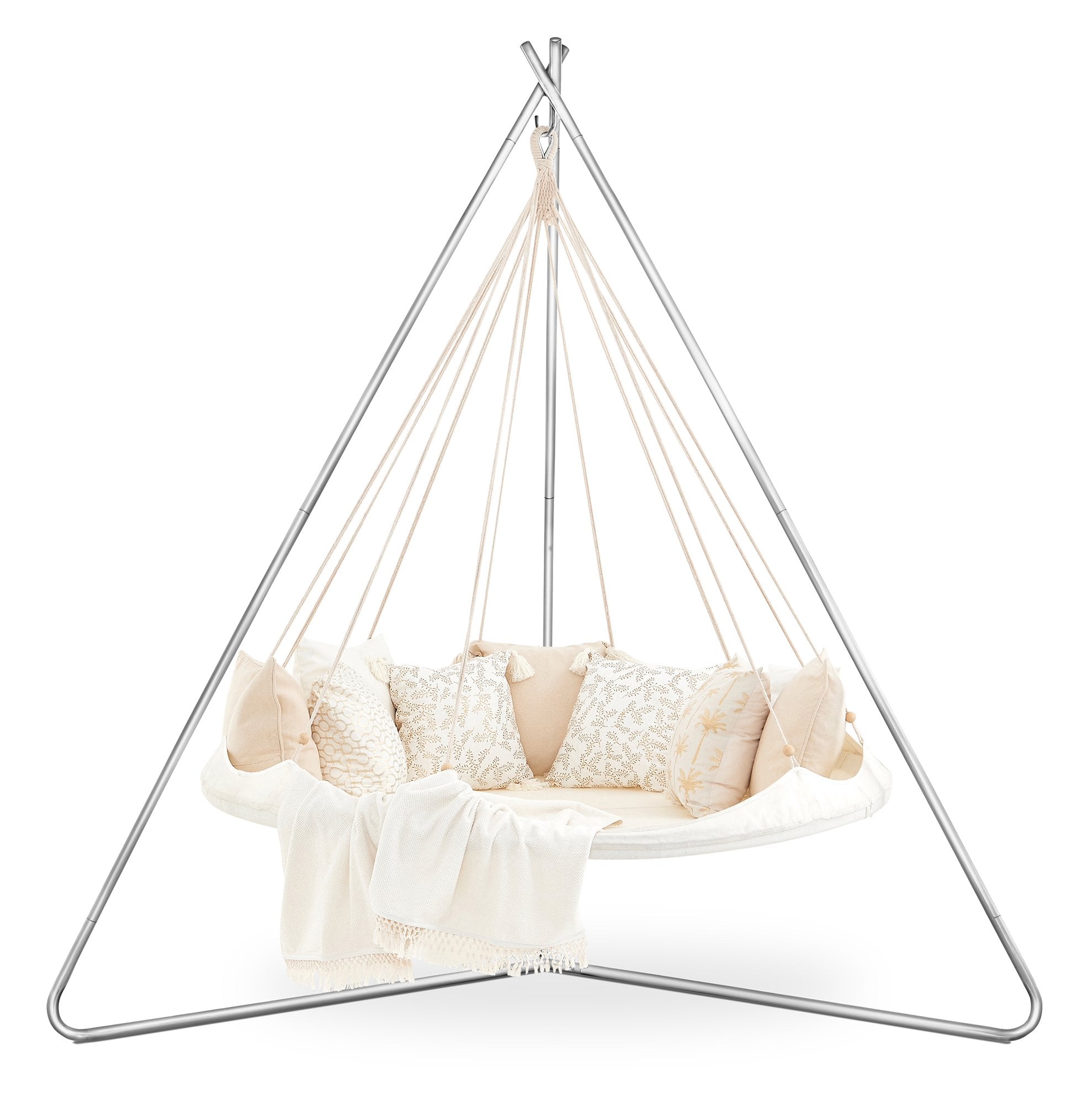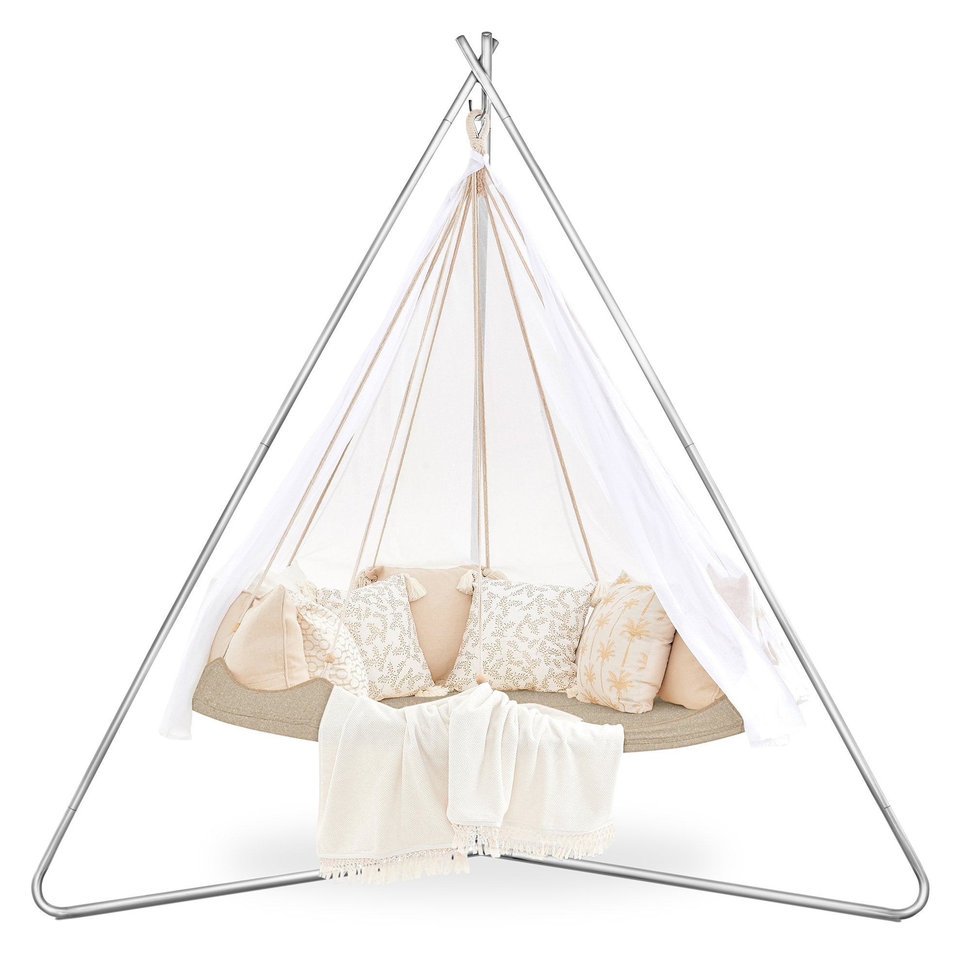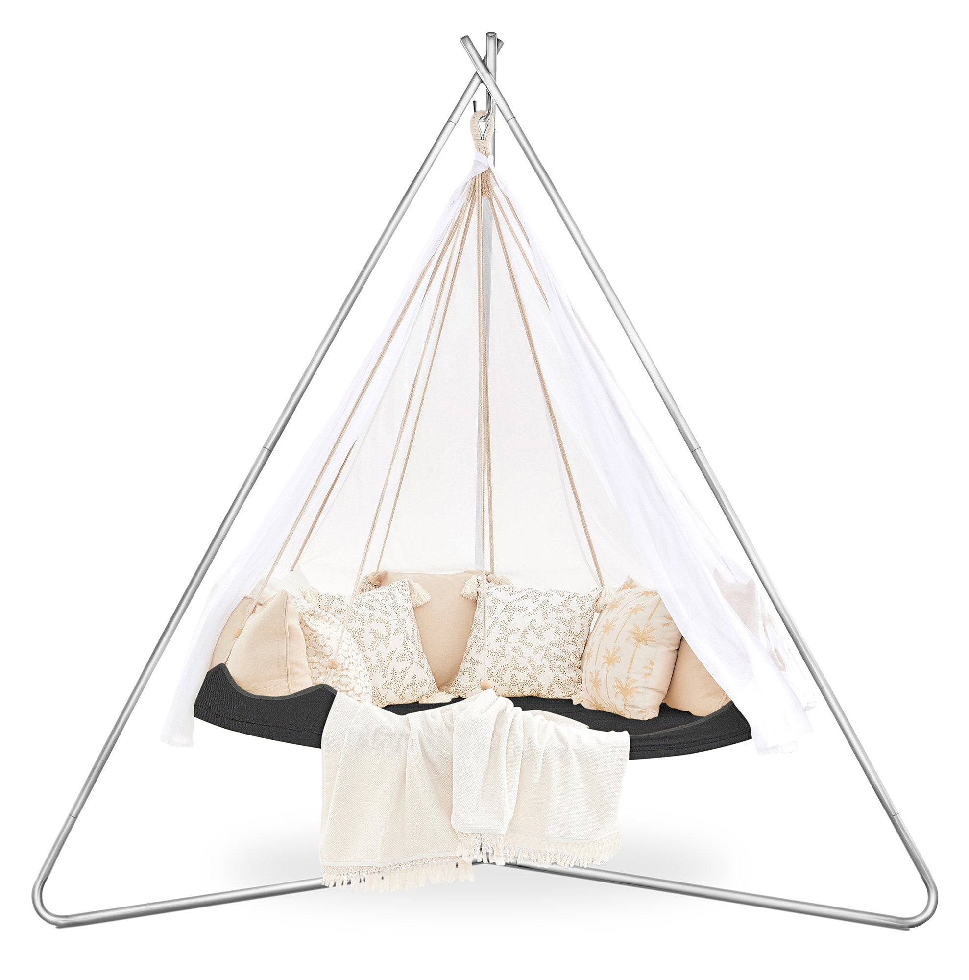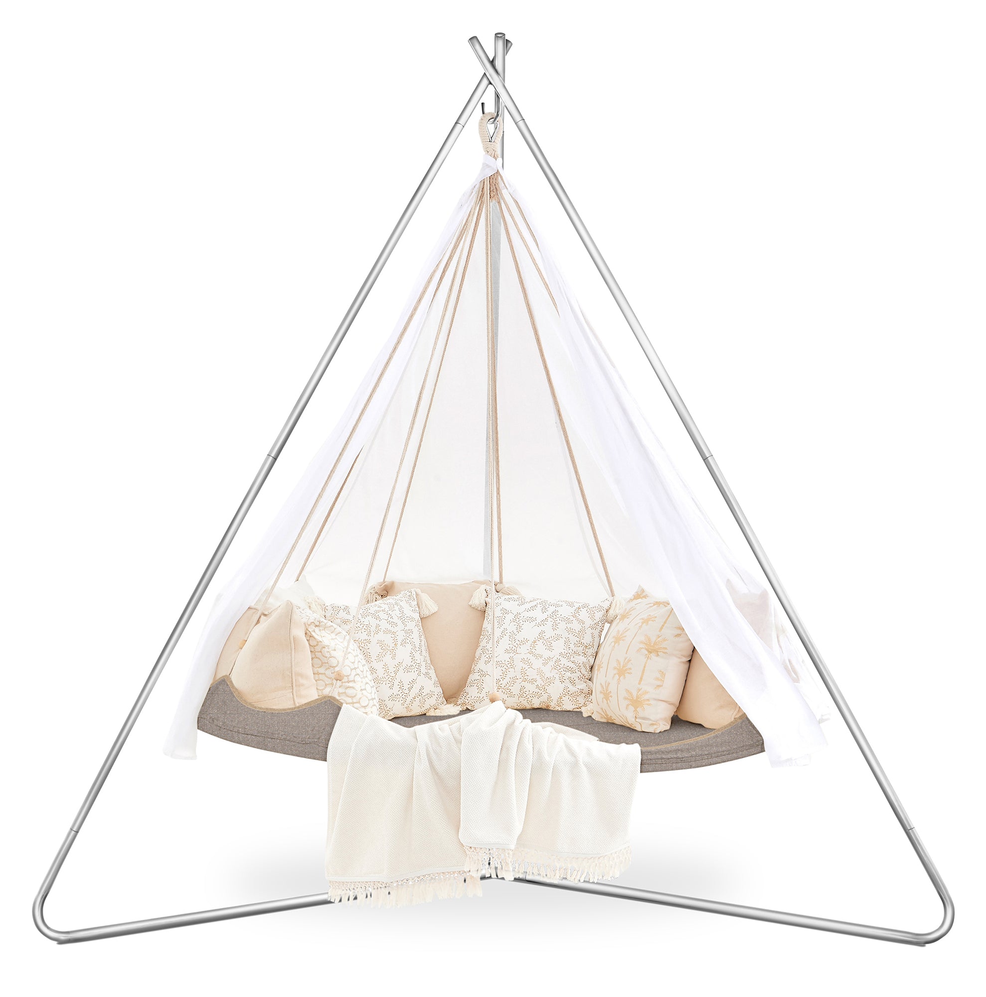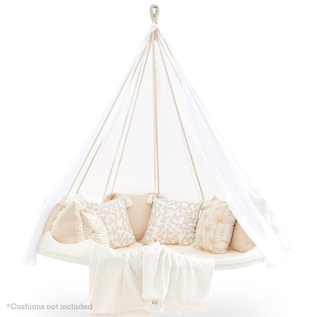 Featuring macramé finishing touches and a chic attachable white sheer net, it is a stylish and contemporary sun lounger with comfort like no other.