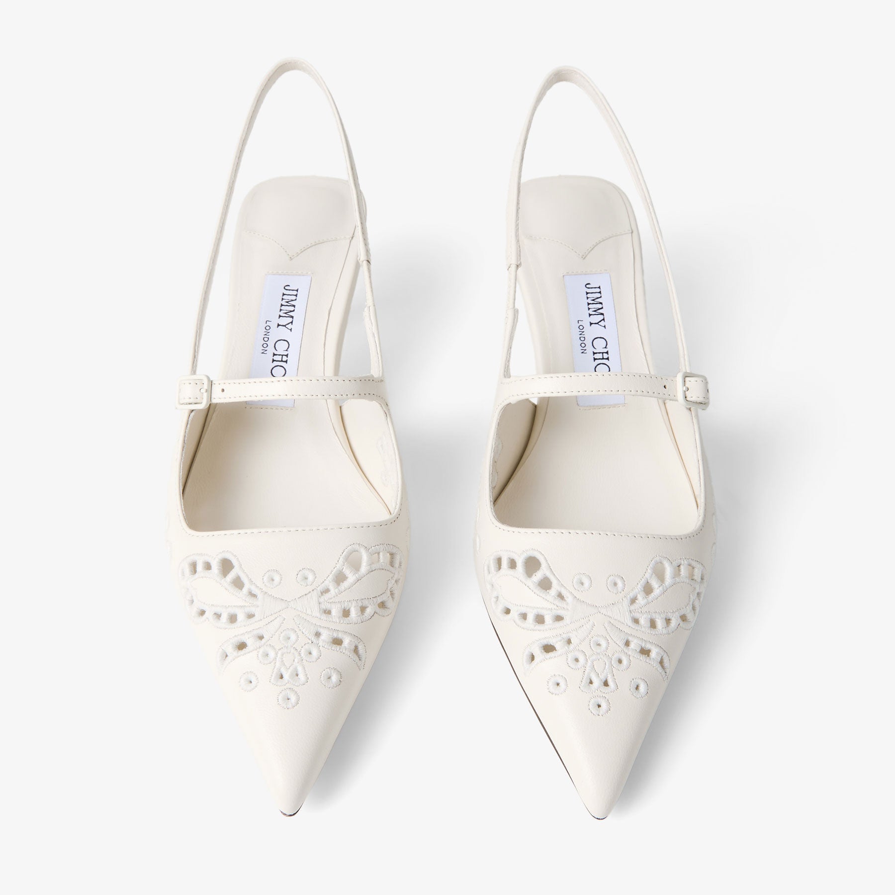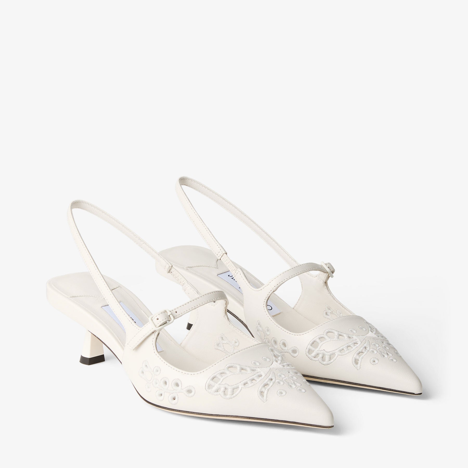 Didi in leather is a modern design with a pointed toe silhouette. This slingback shoe features a strap fastening and a graphic kick heel.