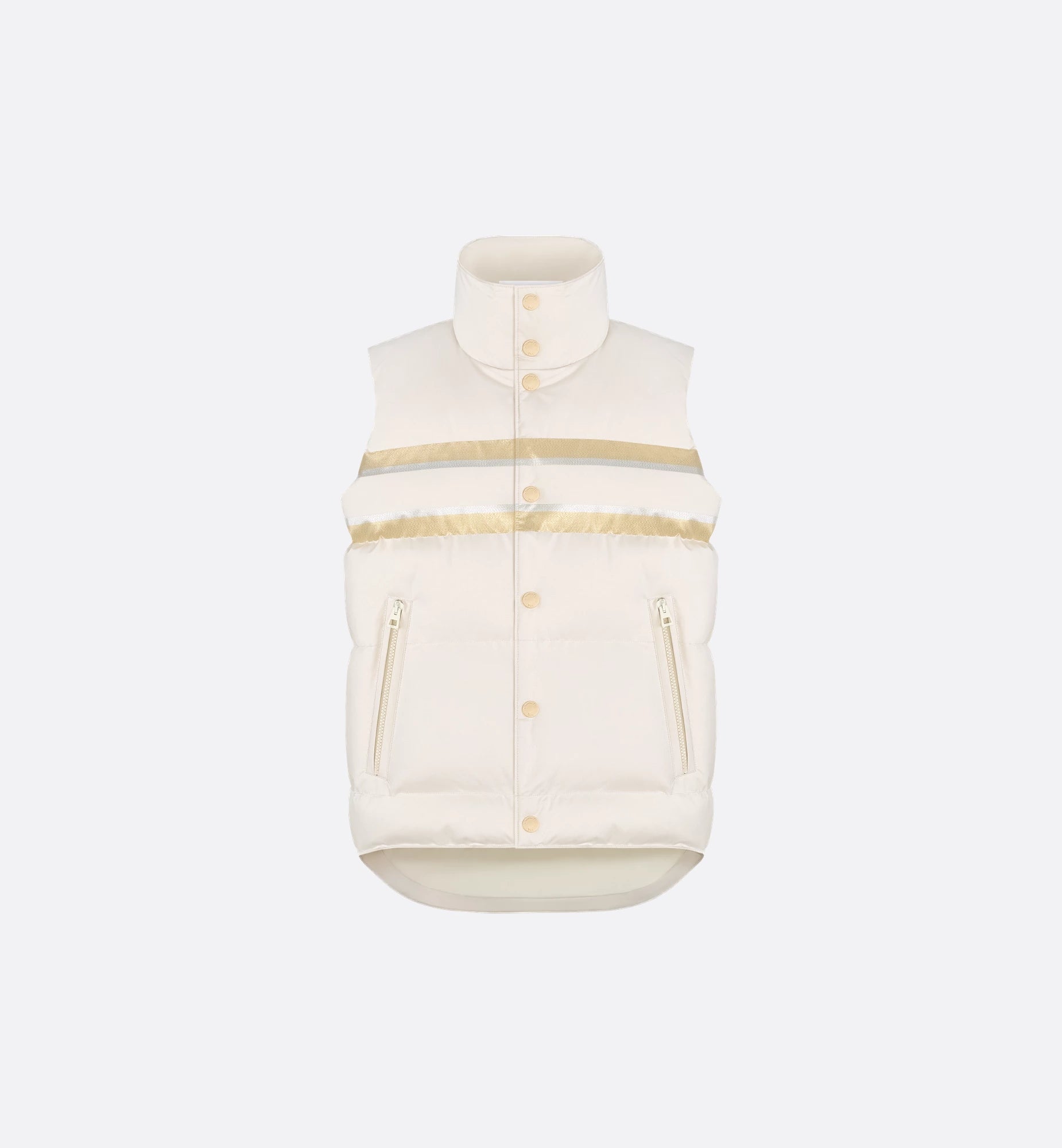 Front gold-finish snap closure