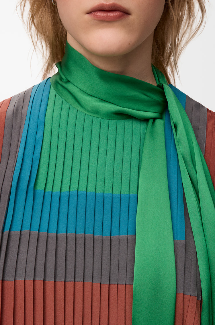 Dress in lightweight technical crepe featuring an asymmetric silhouette with sunray pleats and placed intarsia squares inspired by Josef Albers's "Homage to the Square" series. This dress is part of the LOEWE x Albers collection.