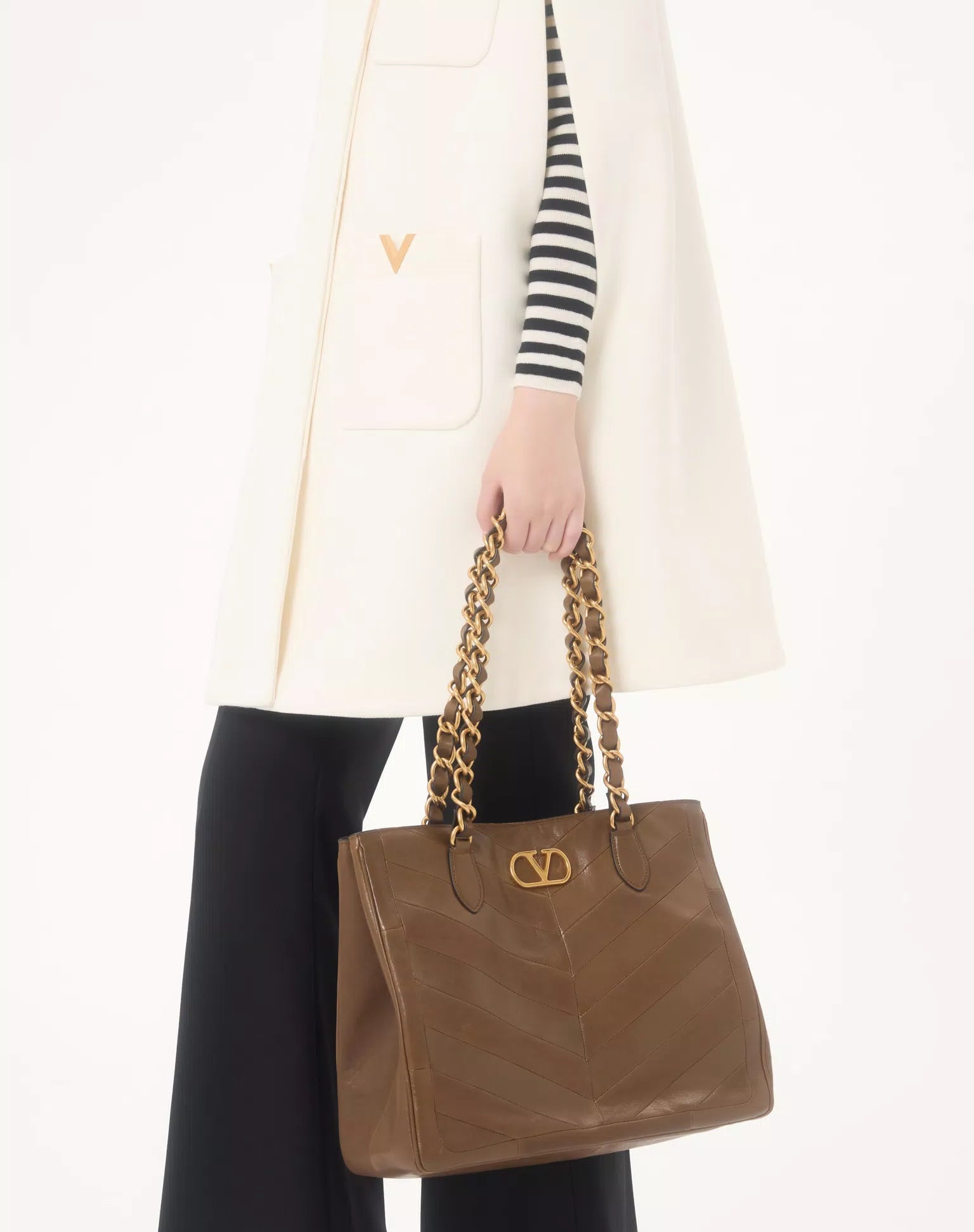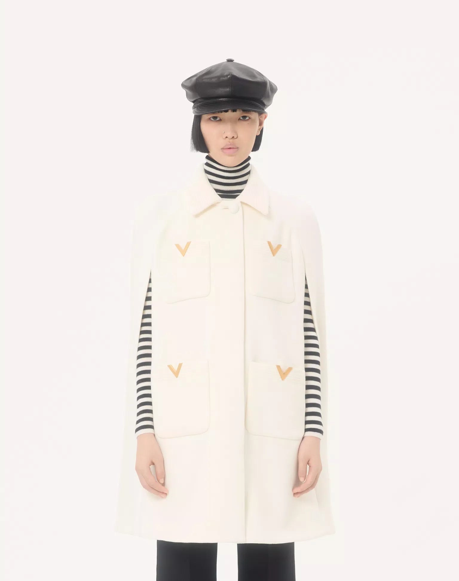 The look of the model is completed by a Valentino Garavani Laseine Bag and Valentino Garavani Hotty Shoes.