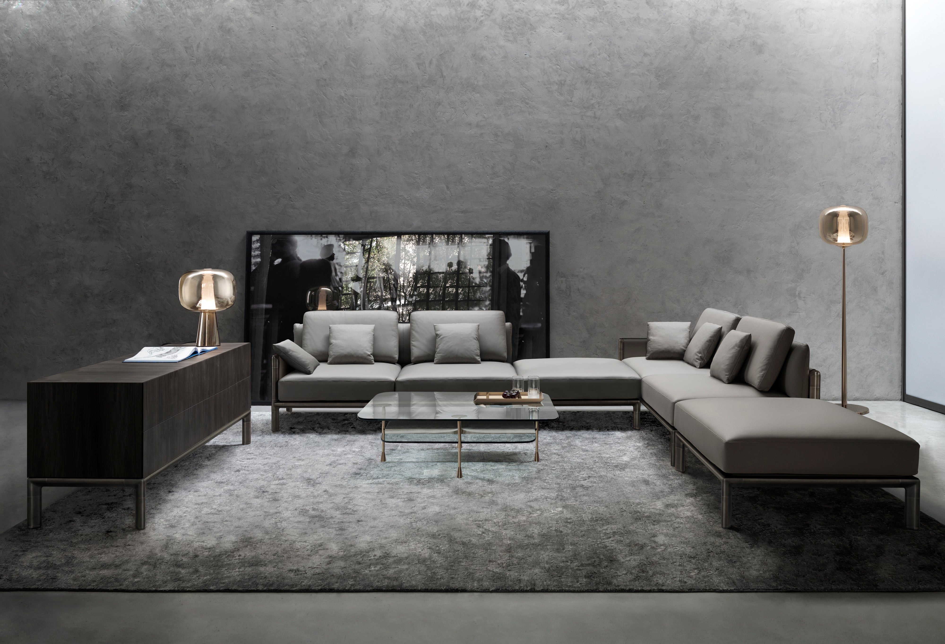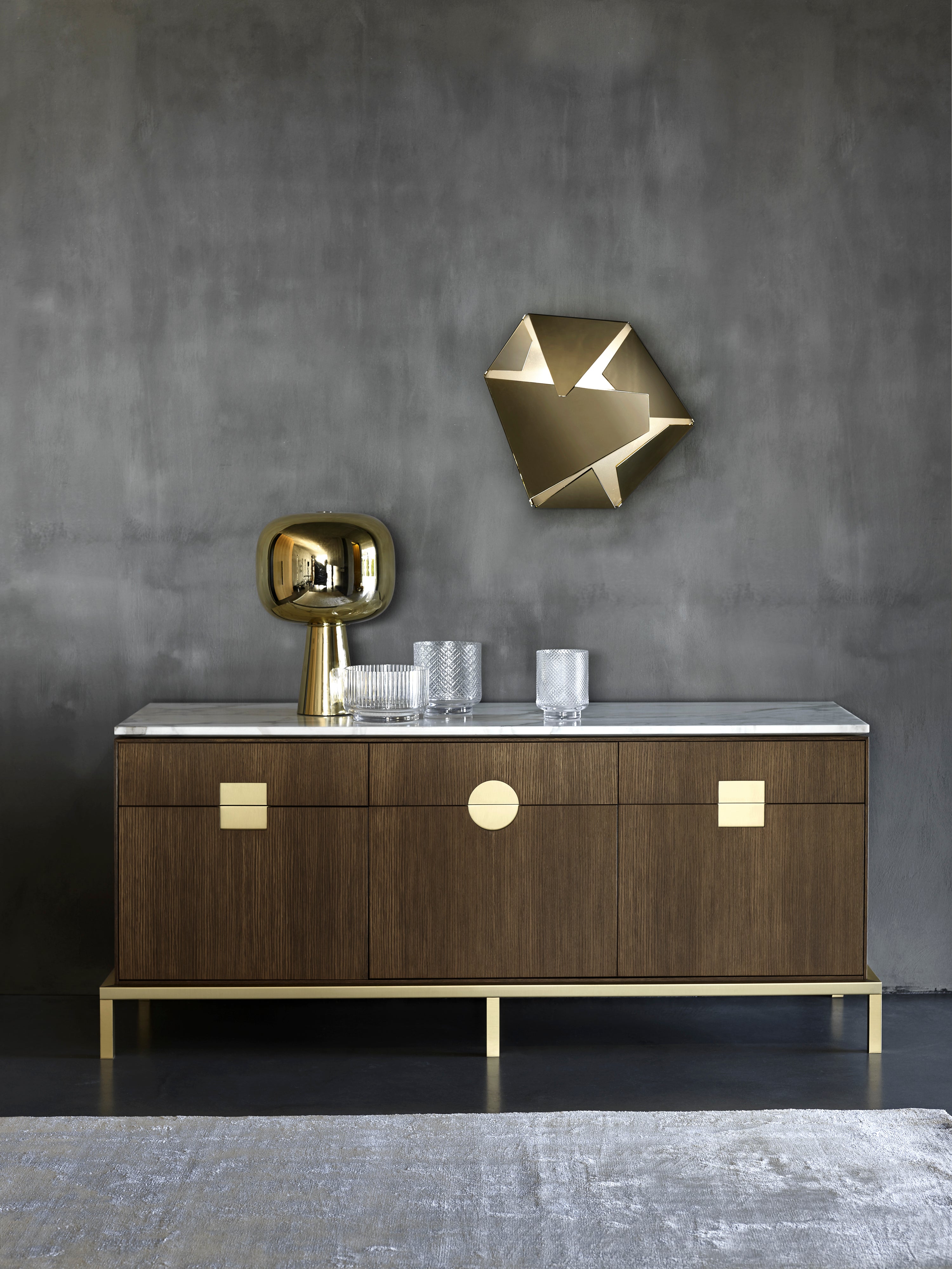Dusk Dawn draws its name from a magical arc of time: the arrival and departure of soft light. It is the time when the sun dips below the horizon to leave an afterglow that signals the arrival of the night, and that carries us to the brief embrace of dawn light in the morning. Playing on the intersection of its two defining shapes: a soft shade and geometric, conic base, Dusk Dawn transforms from what appears to be a solid brass volume to reveal an inner conic 'spire' of light when illuminated.