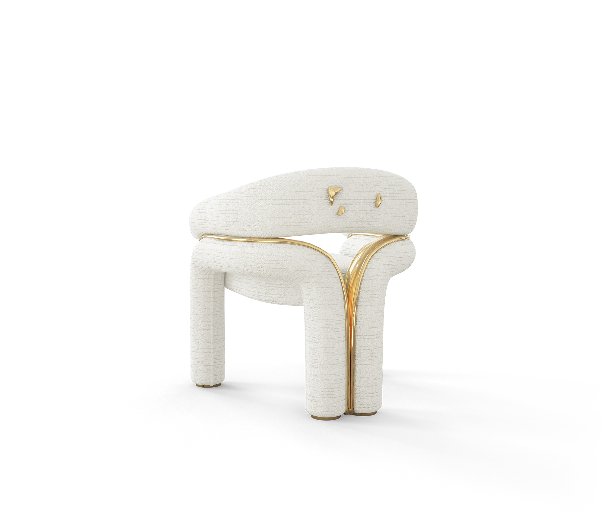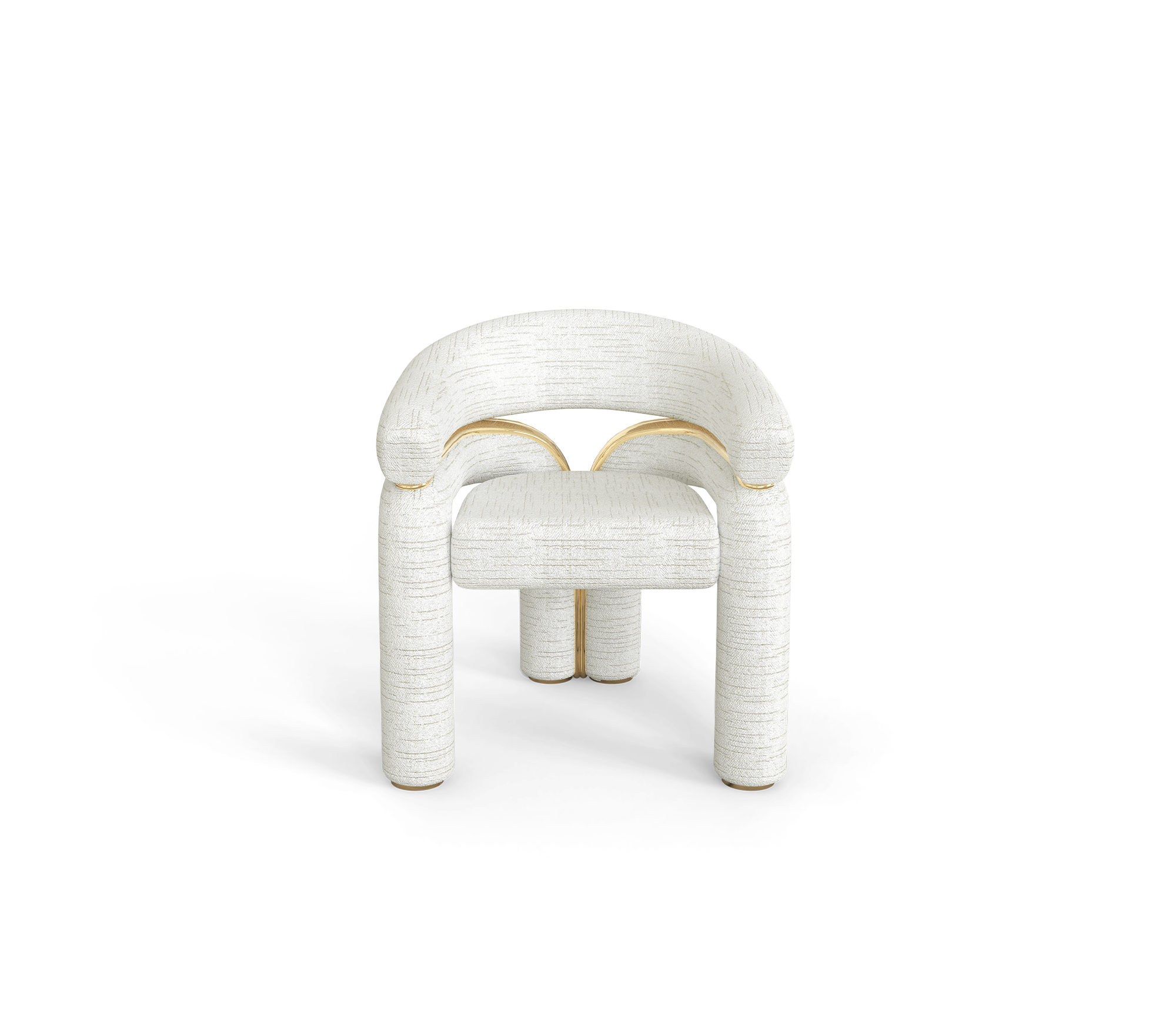 The Elara chair is a unique piece that combines elegance and comfort, inspired by the timeless sophistication of contemporary design. The Elara chair stands out for its exquisite details, including the cast brass handles that adorn its back. The wooden frame upholstered in polyester and filled with soft foam offers incomparable comfort. When you sit in the Elara chair, you're not just settling in; you're immersing yourself in an experience of sophisticated design and exquisite beauty. Every curve and detail has been carefully thought out to transform any space, adding a touch of luxury and exclusivity. This chair is a celebration of contemporary aesthetics, paying homage to high-quality craftsmanship and meticulous design.
