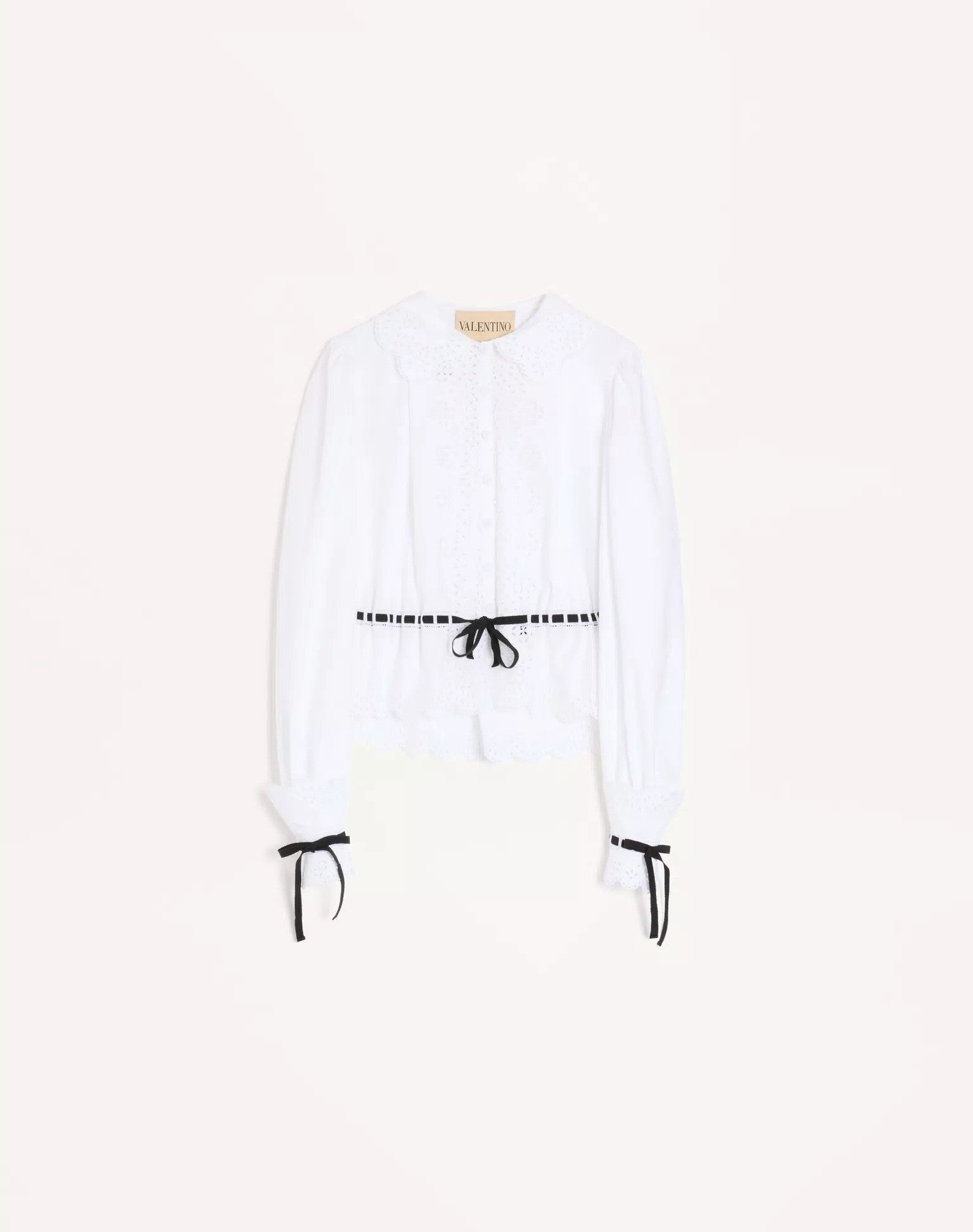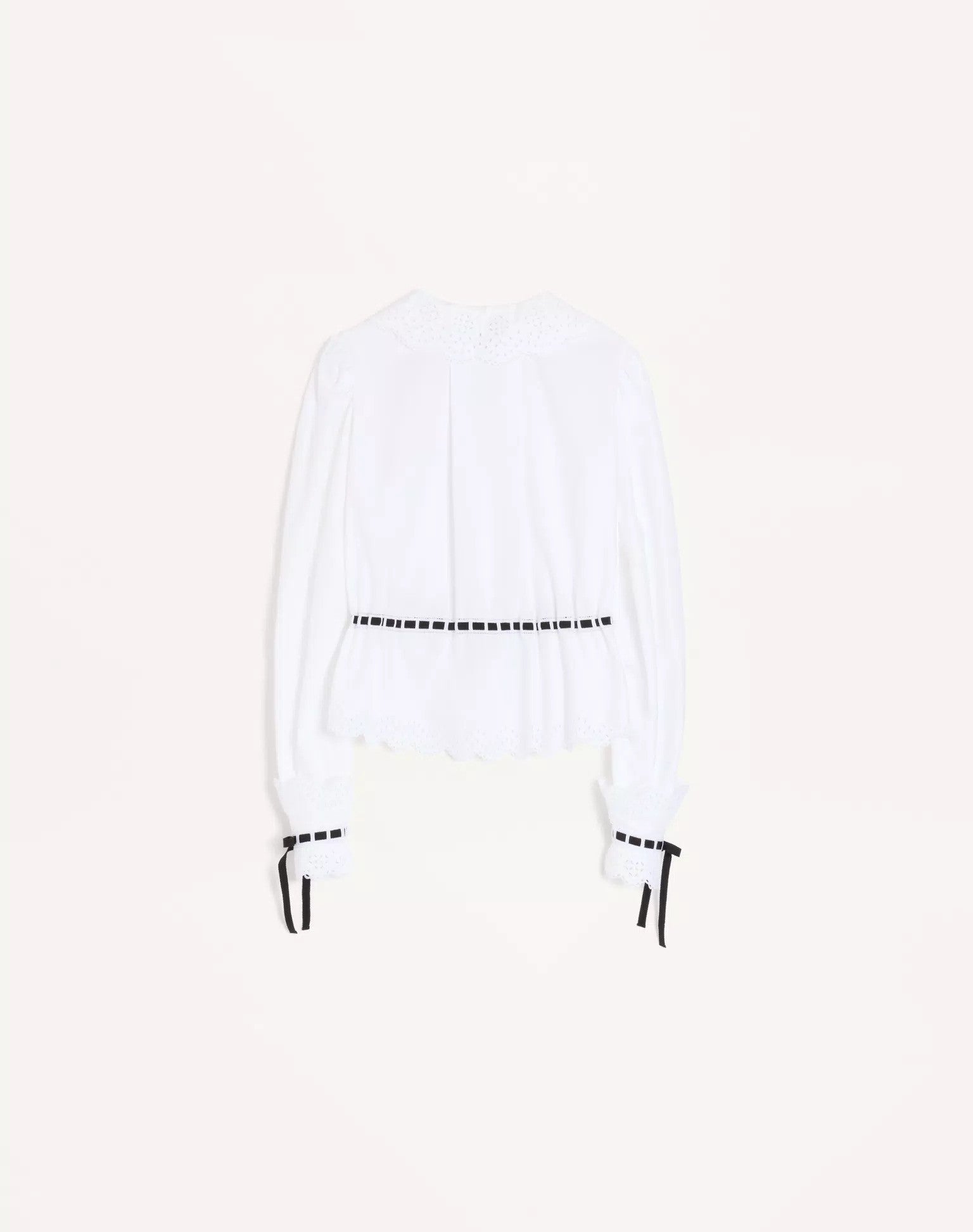 Cotton Poplin shirt with Sangallo pattern embroidery