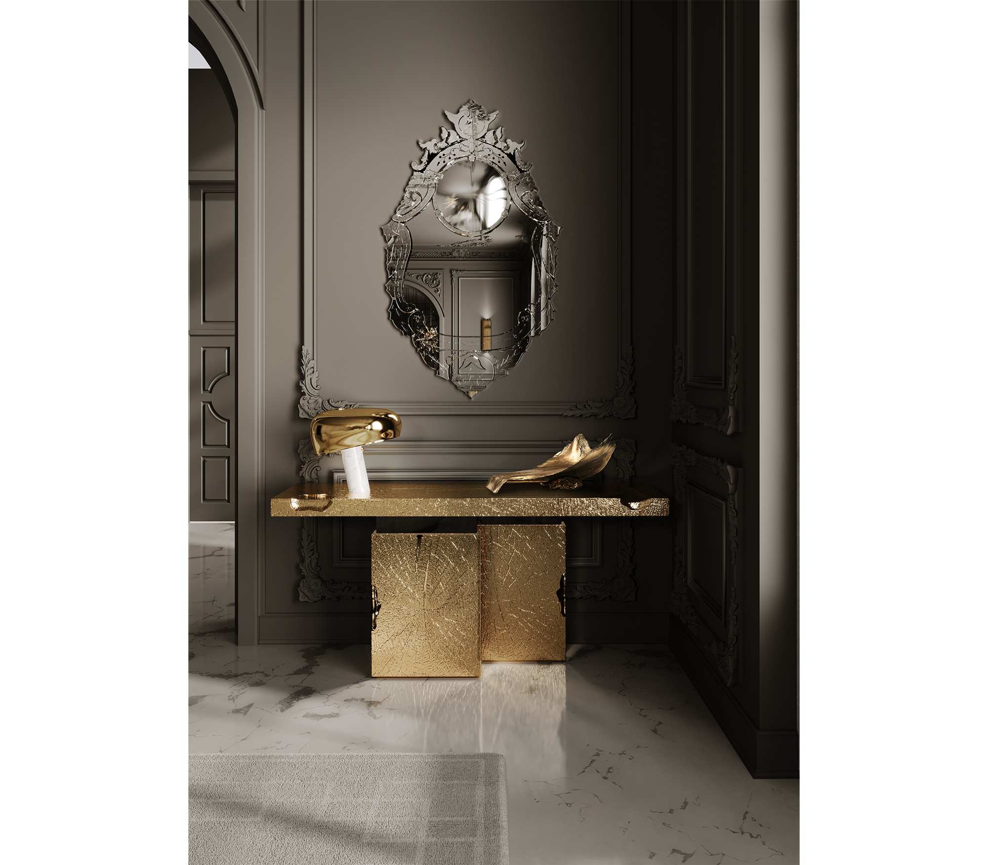 The Empire II Console is a distinctive design piece that seamlessly merges artisanal expertise with luxurious materials. This exclusive console, handcrafted by master artisans, boasts fluid, organic lines and a polished cast brass base, exuding both strength and sophistication. The centerpiece of this version is its exquisite marble top, carefully selected for its natural elegance and timeless appeal. The sinuous, gold-plated base complements the marble’s refined beauty, creating a harmonious balance of durability and opulence. Perfect for elevating any sophisticated interior, this masterpiece is both a functional statement and a work of art.