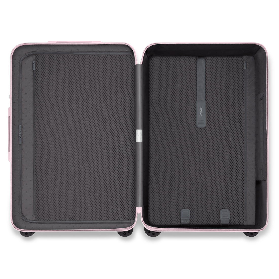 Ideal for 14 to 15 days of travel, the RIMOWA Essential Check-in L in gloss Ballerina pink features a number of ingenious functionalities: