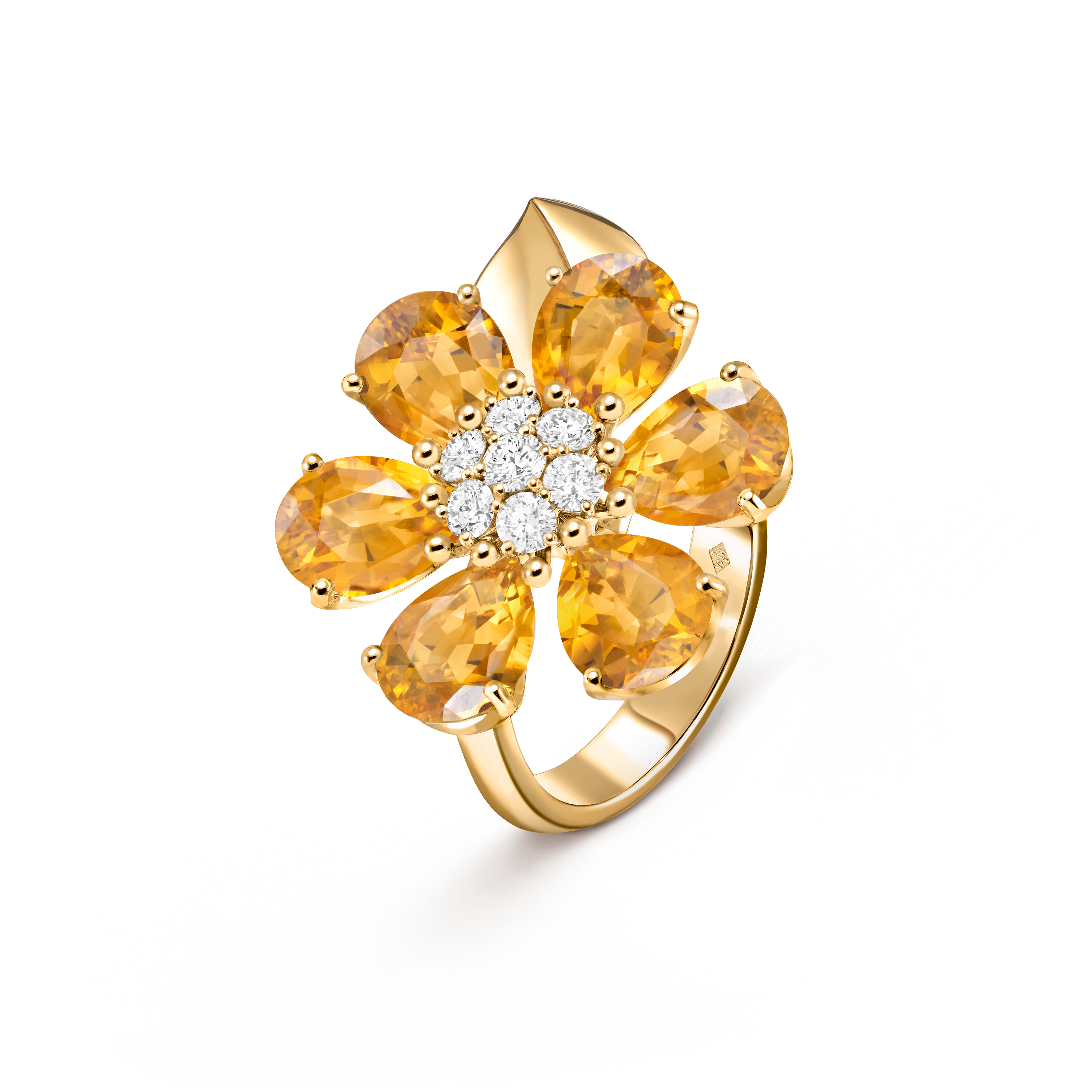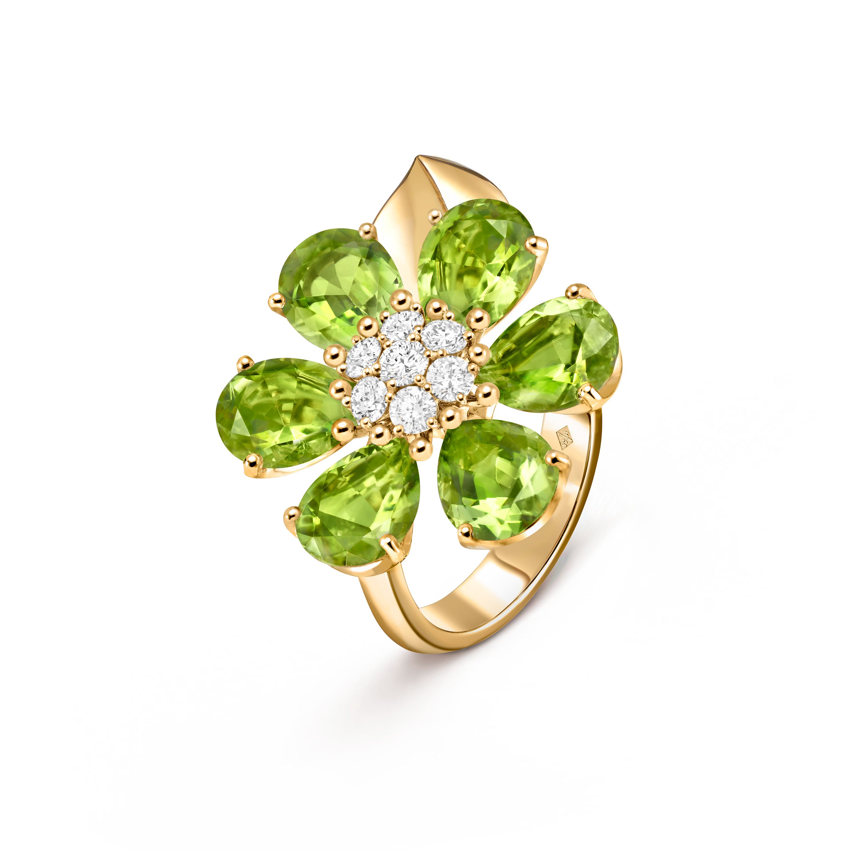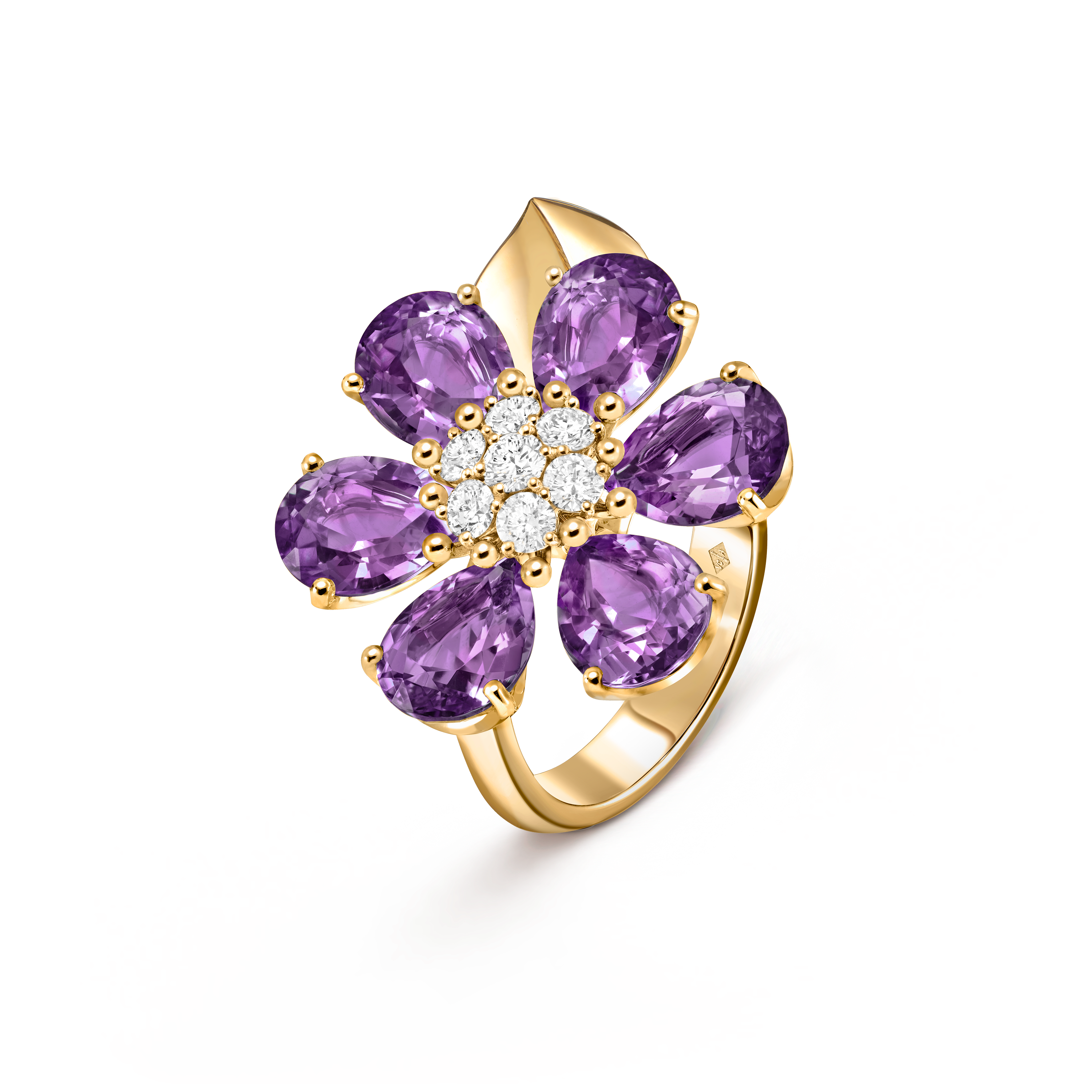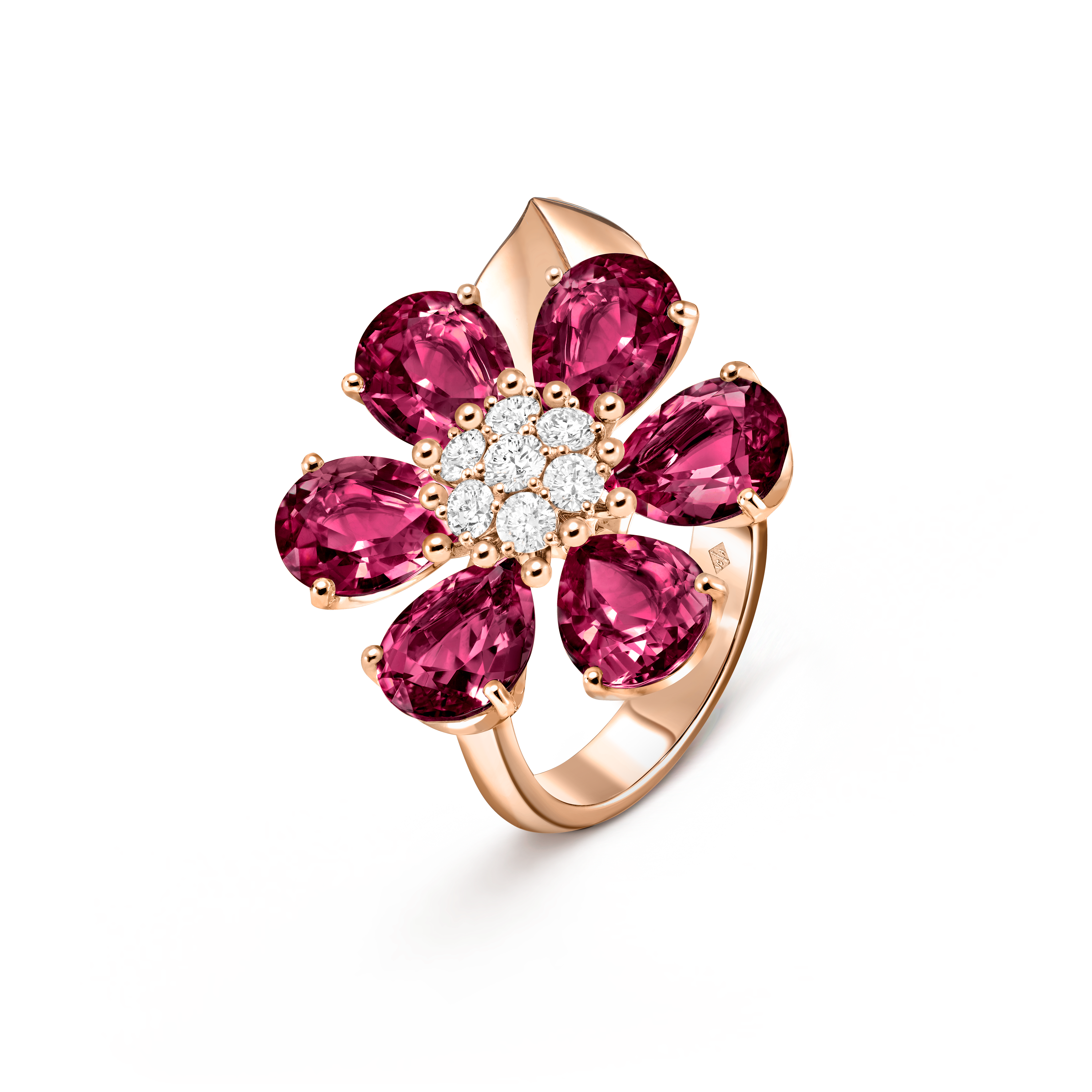 Fleurs d’Hawaï ring, large model, 18K white gold, aquamarines, round diamonds; diamond quality DEF, IF to VVS.