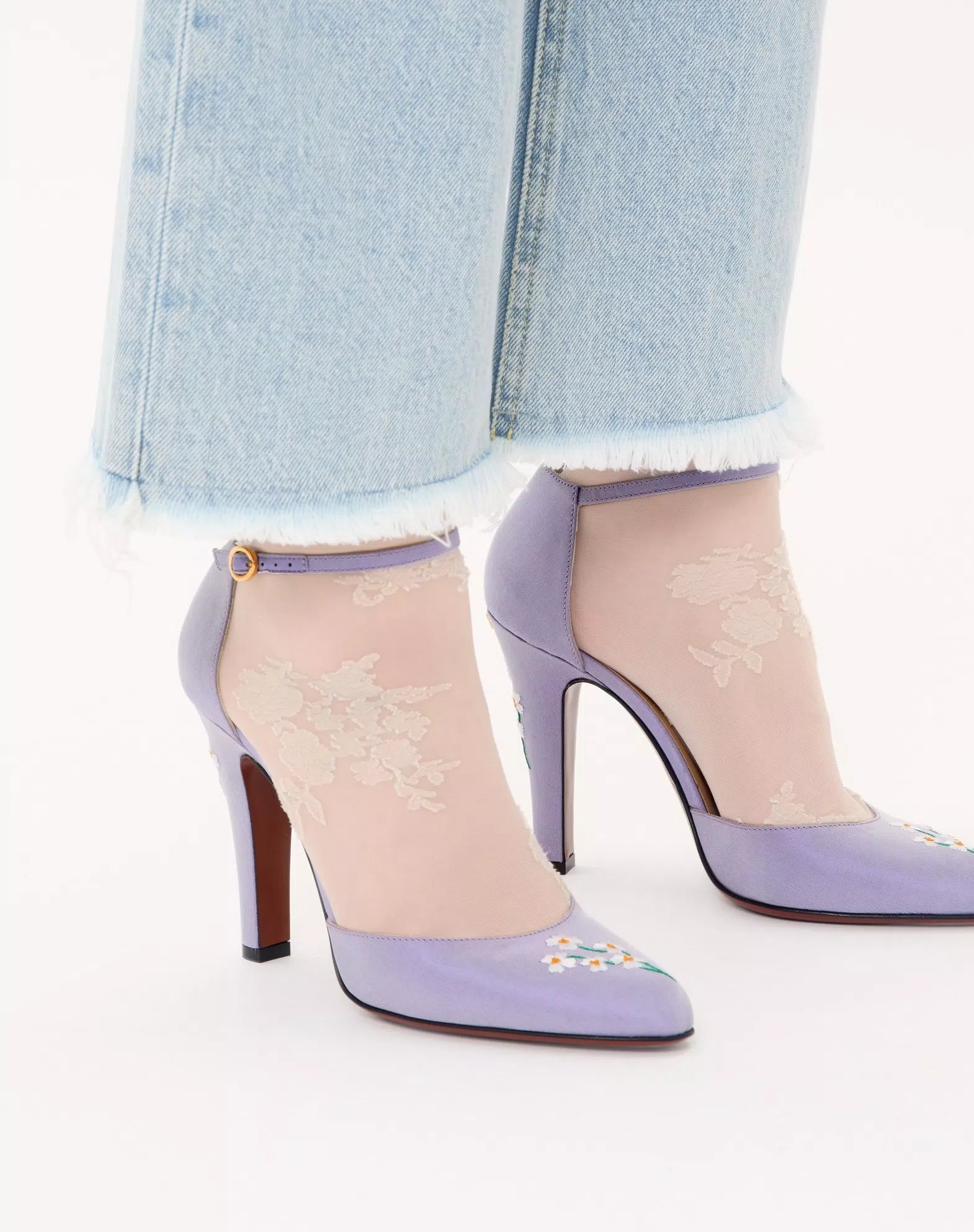 - Floral embroidery on upper and heel