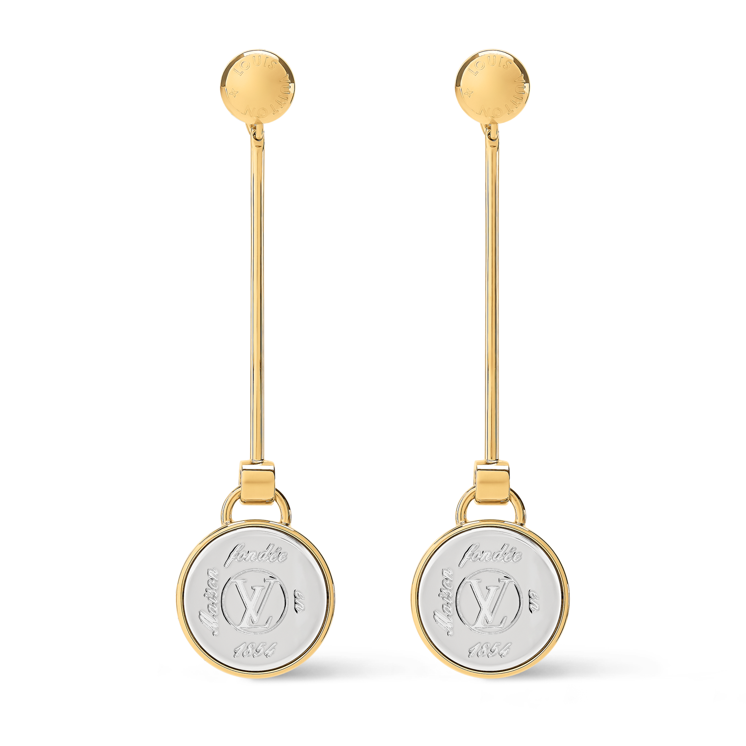 The intricately detailed design of the LV Signet Earrings is a creative fusion of contemporary chic and heritage inspirations. Crafted in lustrous gold-colour metal, it showcases an original variation on the iconic LV Circle emblem finely engraved with historical references. Louis Vuitton signature studs add a final House flourish to these boldly elegant jewels.