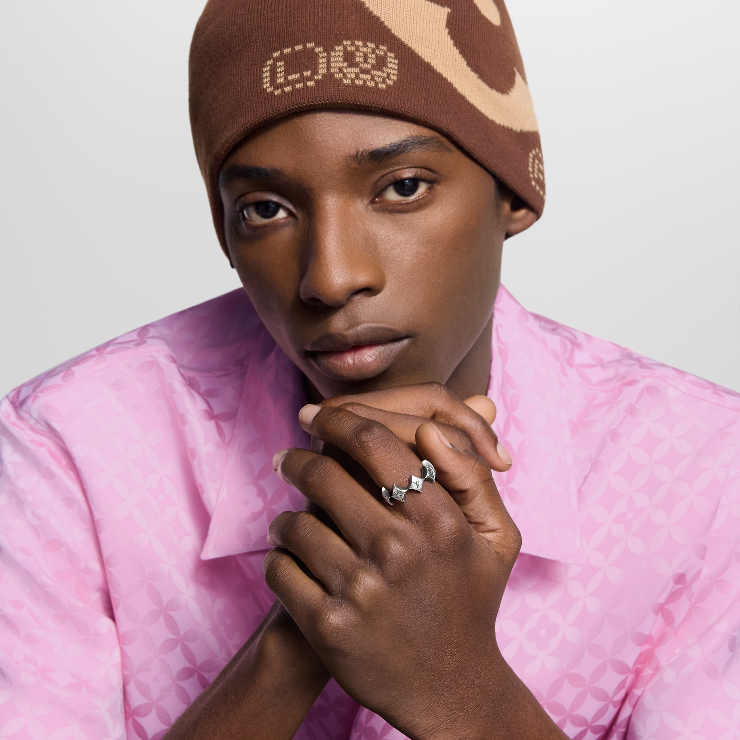 The LV Spiky Flower Ring radiates elegance with an edge. A sterling silver base and signature engravings in black patina give this an everyday ease, while the jagged corners of the repeating diamond shape create an uncommonly graphic look. This unusual yet thoughtful pairing demonstrates the House's unceasing commitment to and history of fine craftsmanship.