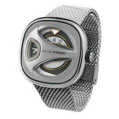Milanese bracelet: Stainless steel milanese bracelet with SEVENFRIDAY engraved sliding buckle