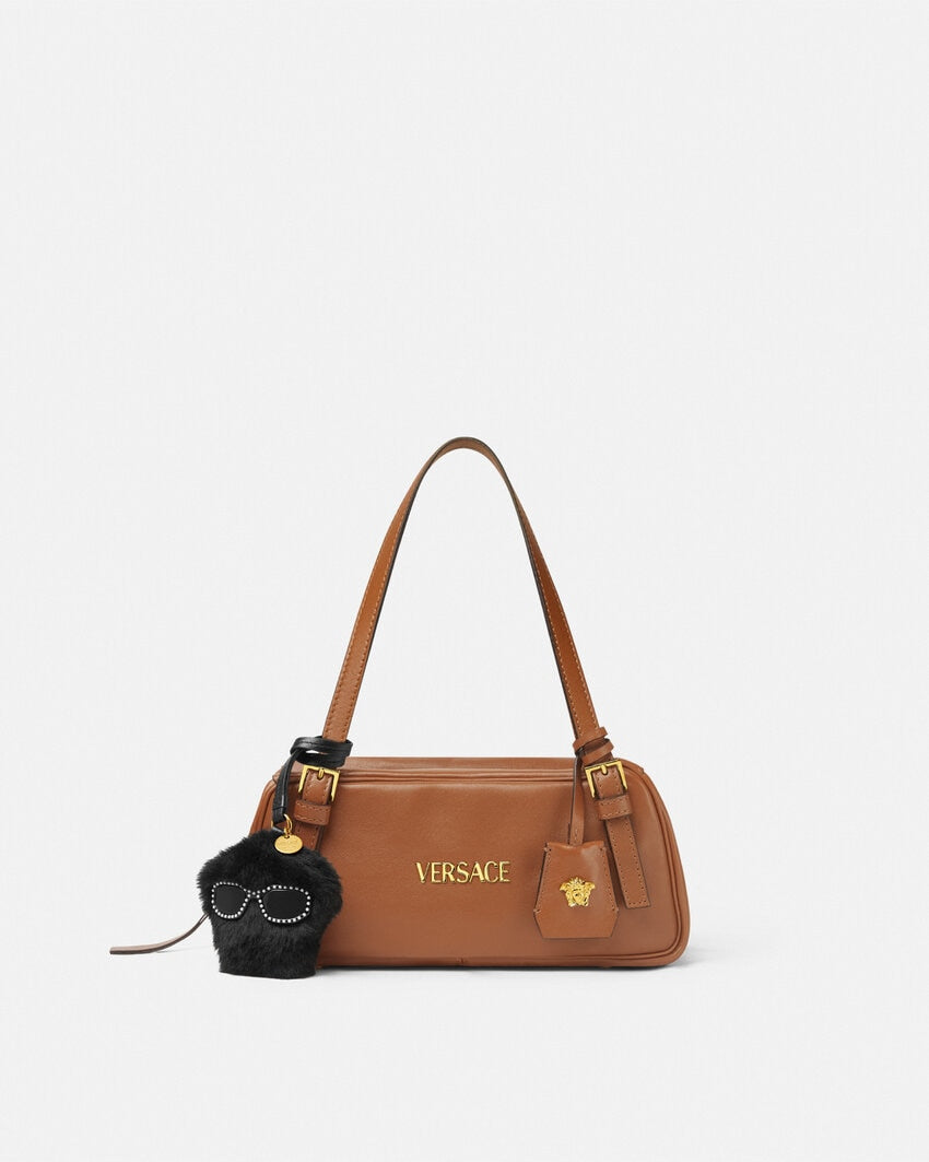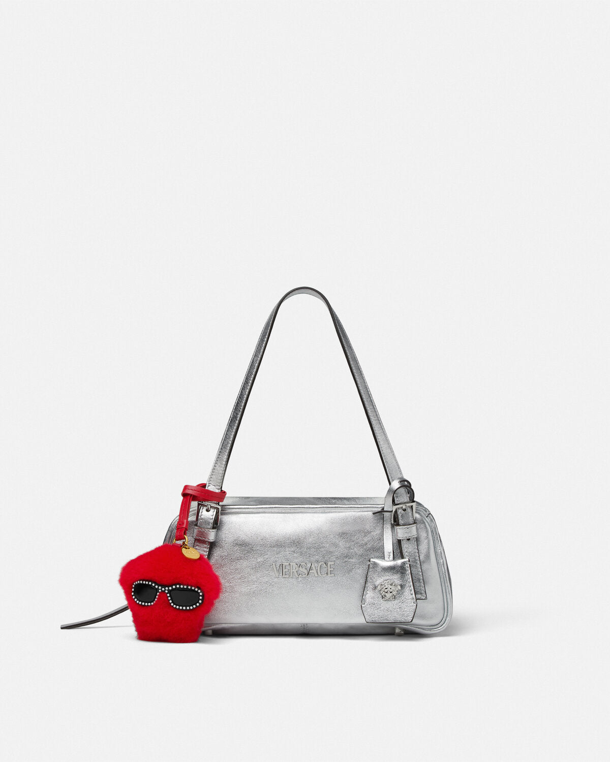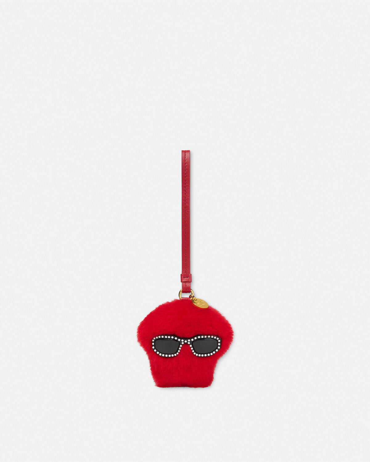 A playful keychain to personalise everyday bags, made from soft shearling and nappa leather, featuring an iconic Medusa wearing Medusa Biggie sunglasses.