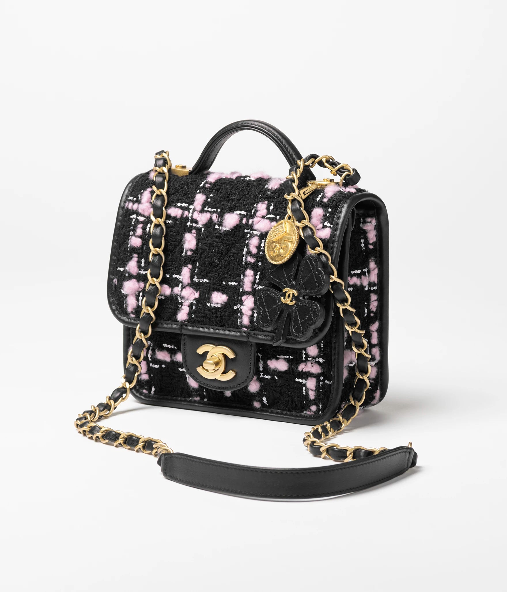 Material: Wool Tweed, Calfskin & Gold-Tone Metal
