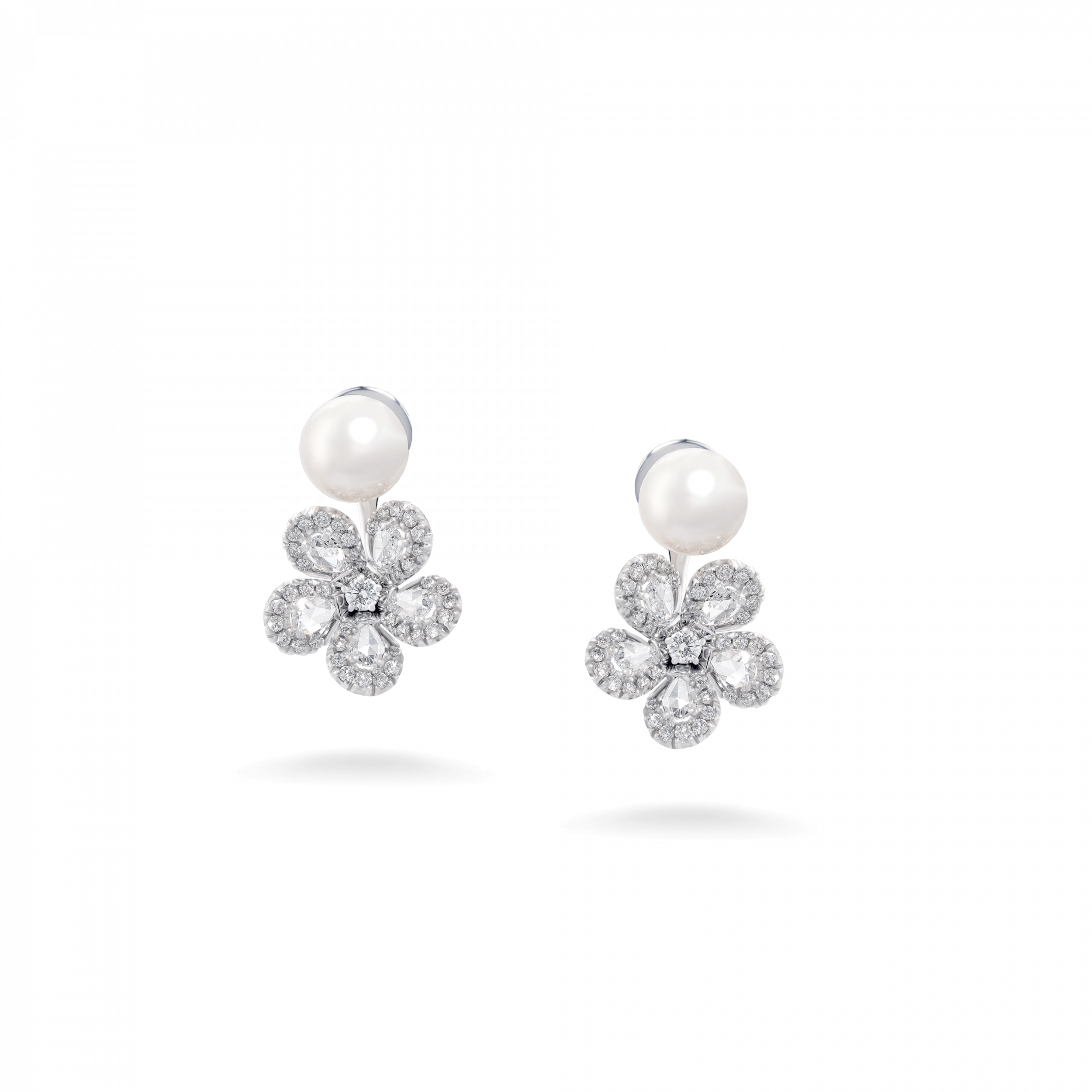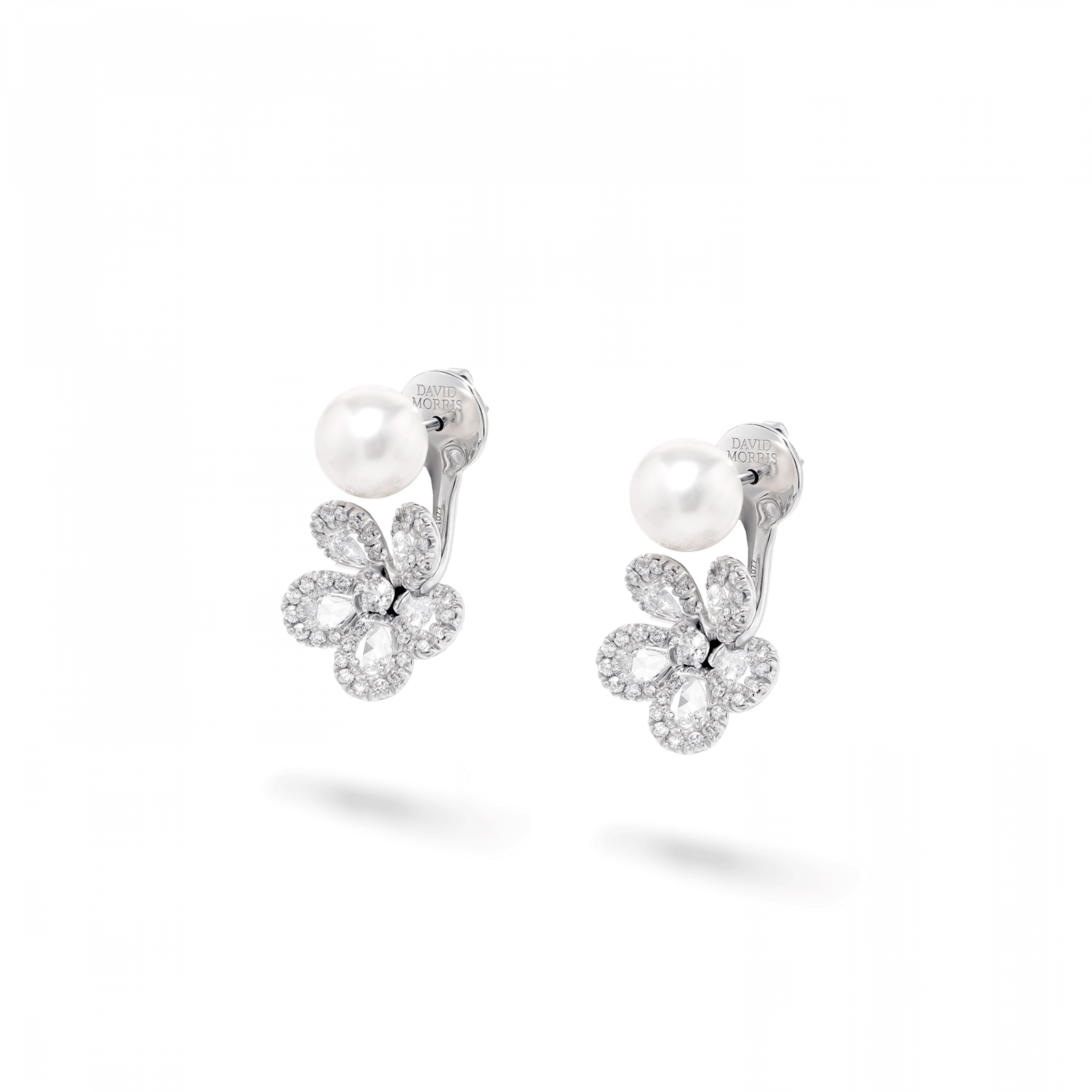 Miss Daisy Pearl Stud Earrings with white diamonds and Akoya pearls set in 18ct white gold.