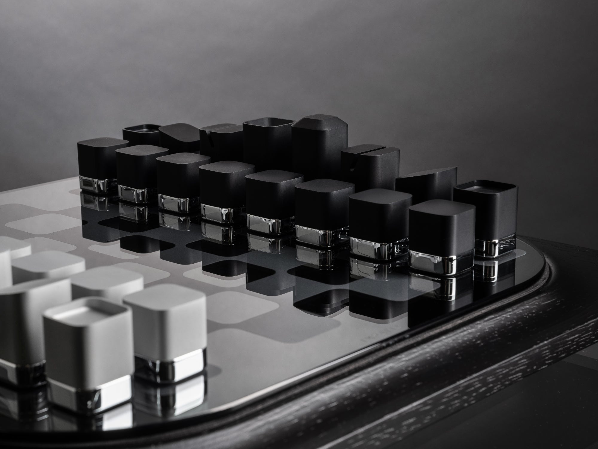 IMPATIA chess set blends fluid shapes with bold design, turning strategy into art. Crafted from wood, leather, glass, and metals, each piece elevates the gaming experience, merging tradition with innovation in every move. Made in Italy