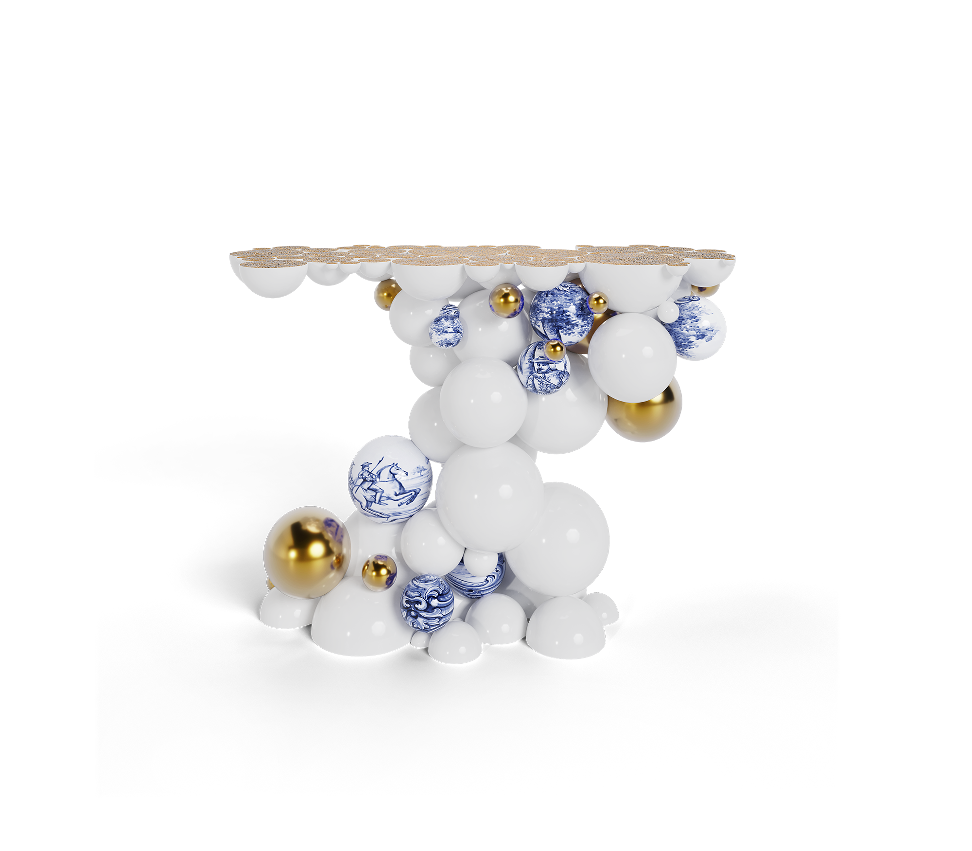 Defying the laws of physics, the Newton Heritage Console emerges as a testament to the ancient art of metal deftly assembled to create an extraordinary pattern and organic structure. This contemporary console not only bears a rich cultural legacy but also propels itself towards the future, consistently leading the way in the design scene. It stands as a genuine expression of exclusivity that takes you on a magnificent journey through the Portuguese legacy. Resembling traditional tiles, the Newton Heritage Console is more than just a piece of furniture; it encapsulates an artful narrative, bringing the essence of heritage and innovation into the modern living space.