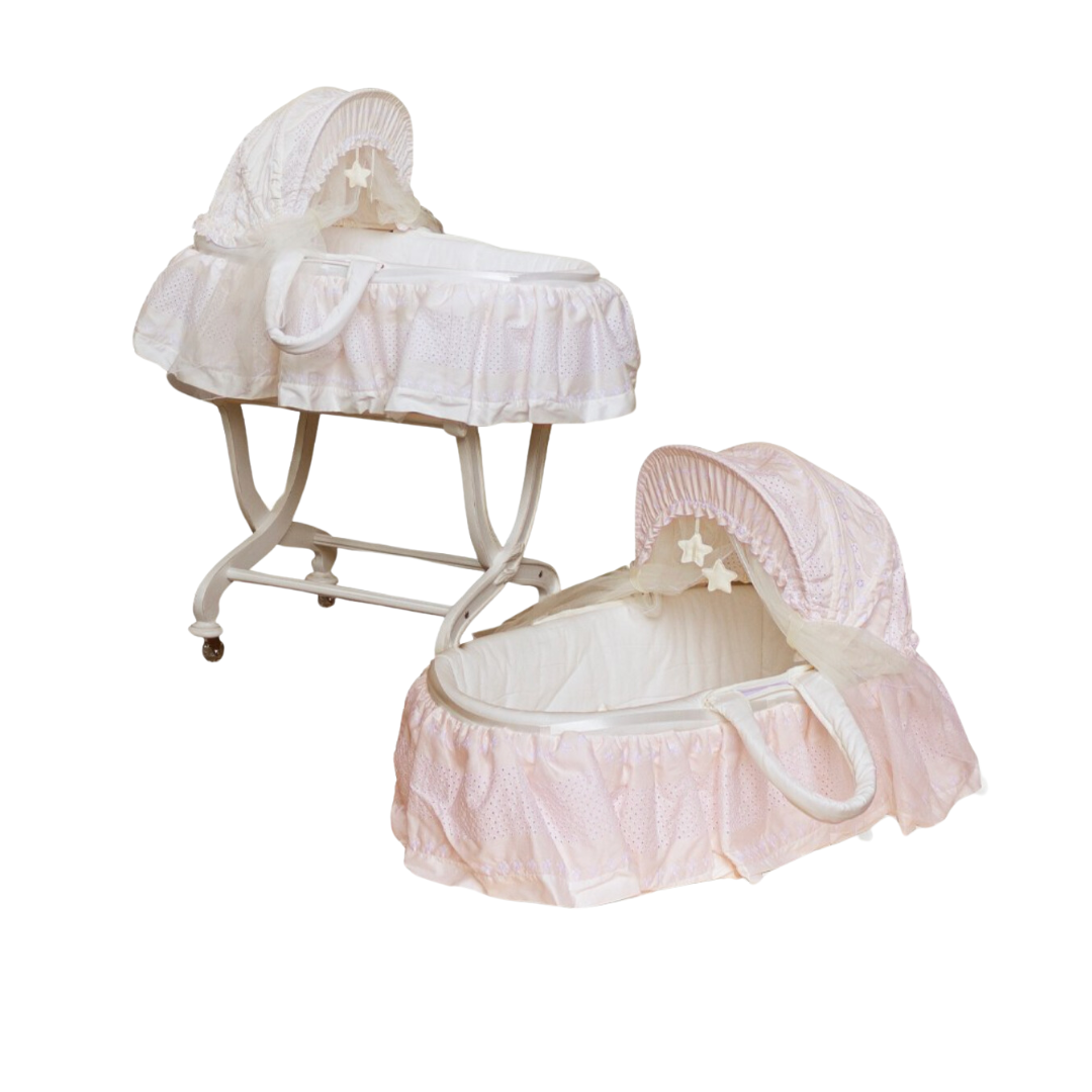 Beautiful handcrafted Moses basket by the luxurious Italian brand Savio Firmino. The cushioned interior promises to keep your little bundle cosy and compact – just what they need to feel secure as they doze off to sleep.
