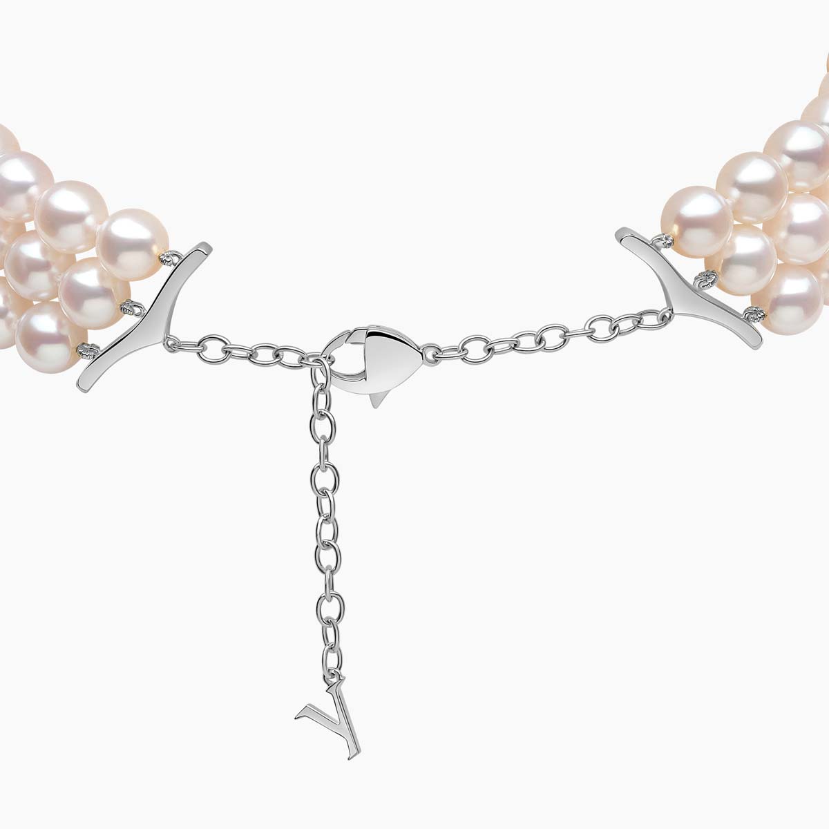 Part of our O by Yoko Collection, this bold choker frames the neckline with three rows of exquisite white Japanese akoya pearls, each hand-selected for their radiant lustre. At its heart, a sculptural diamond-set 'O', totalling 2.42 carats in 18k white gold. An adjustable chain ensures the perfect gift, seamlessly blending timeless elegance with contemporary allure, this signature design celebrates the spirit of Yoko London.
