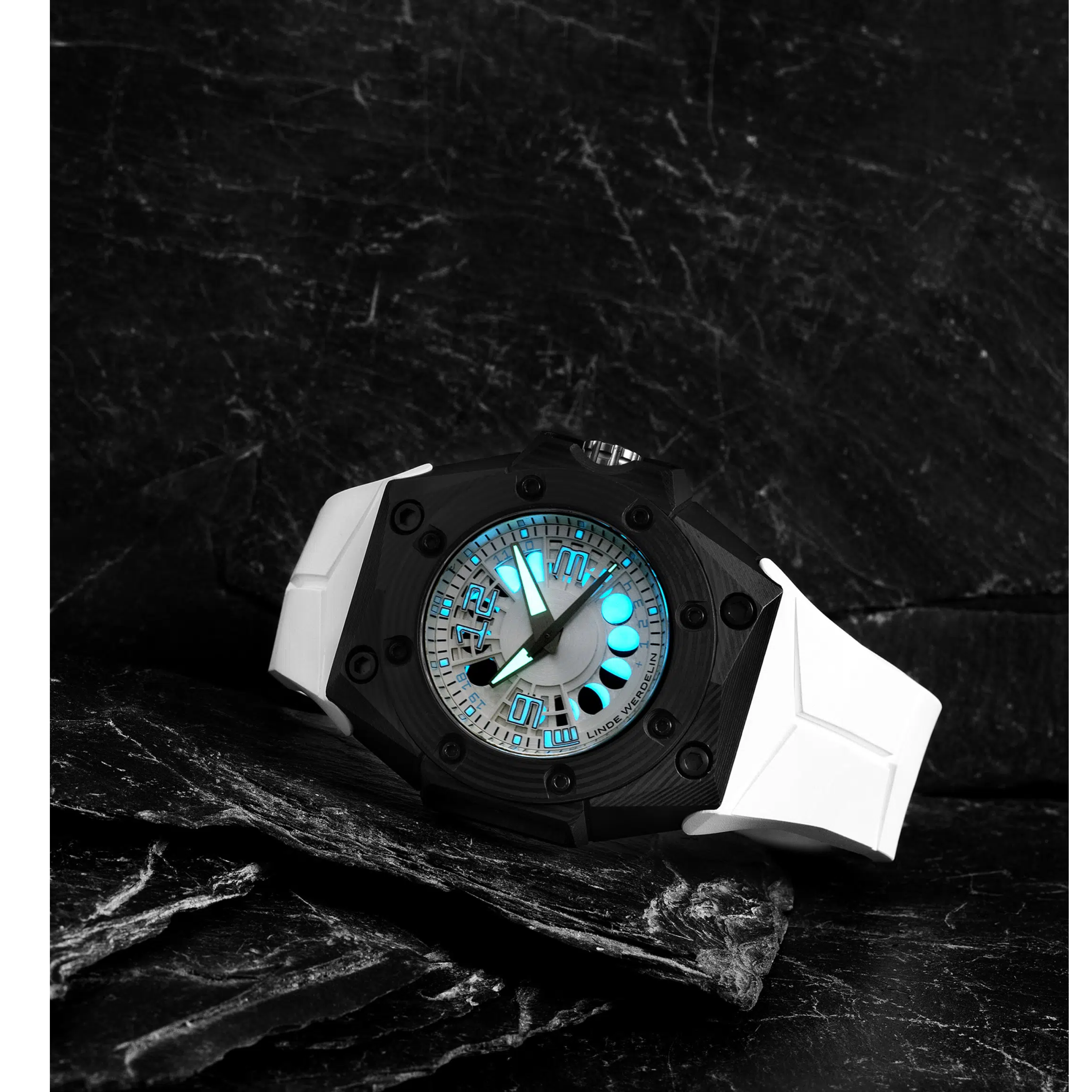With a case weight of 60 grams, the Oktopus Moon 3DTP™ is now the lightest watch that Linde Werdelin has ever produced, (two grams less than the SpidoLite 3DTP™), making it an ideal sports and diver’s watch, with extreme depths of 300m under water.