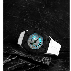 The proprietary 3DTP™​carbon of the highly technical case is layered in sheets to ensure maximum lightness as well as durability and features a custom made Swiss movement.