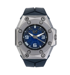 Inspired by the colours of the North Sea’s deepest waters, the black/blue fumé dial on these two mirror image pieces (Oktopus and SpidoLite Nord) features varied gradations of blue, surrounded by a sand-blasted highly anti-corrosive titanium grade 2 case.