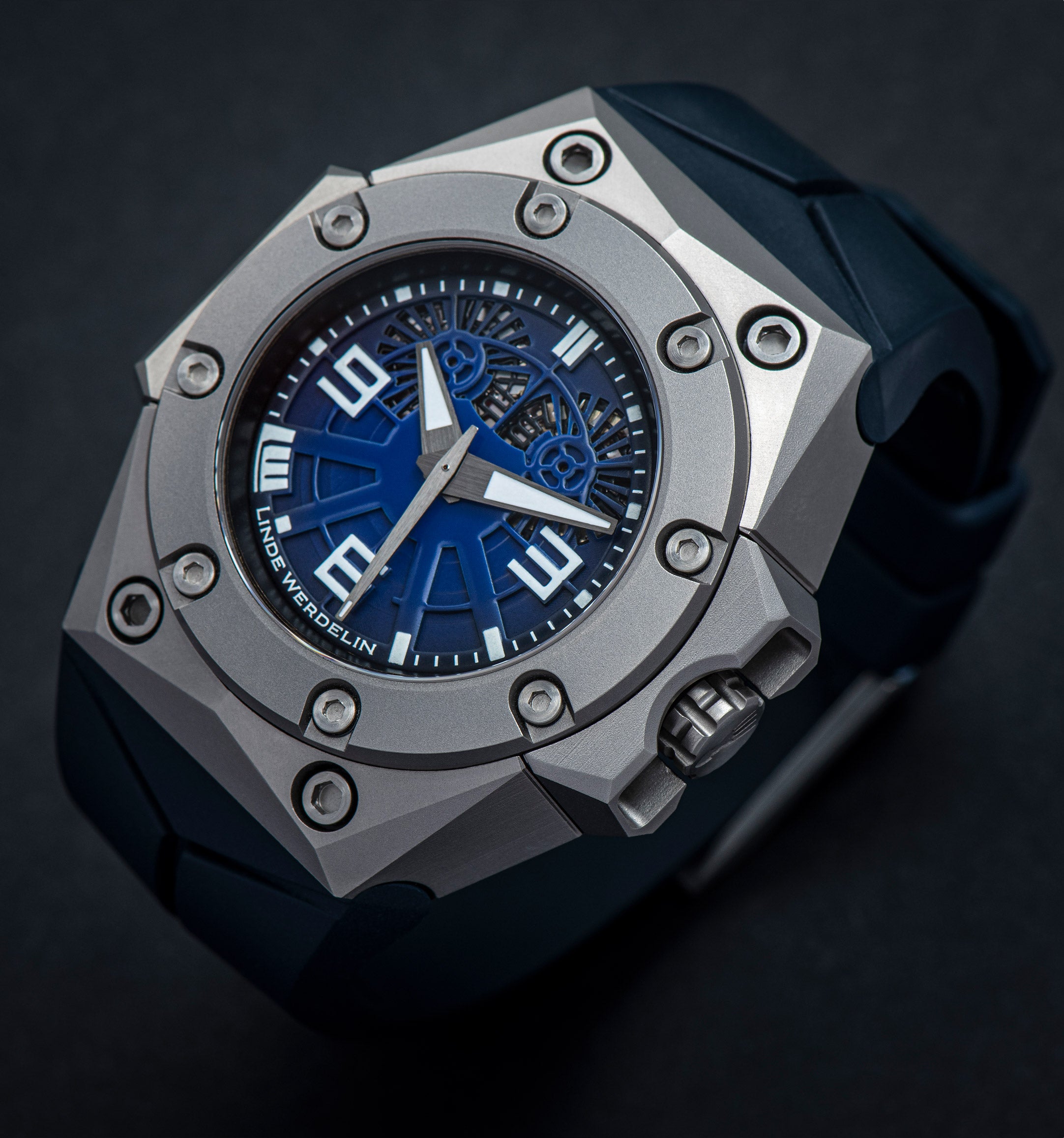 Powered by the modified Dubois Dépraz double date movement, this series introduces Linde Werdelin’s first Oktopus series with a full titanium grade 2 case (all previously manufactured Oktopus of this generation have a ceramic bezel).
