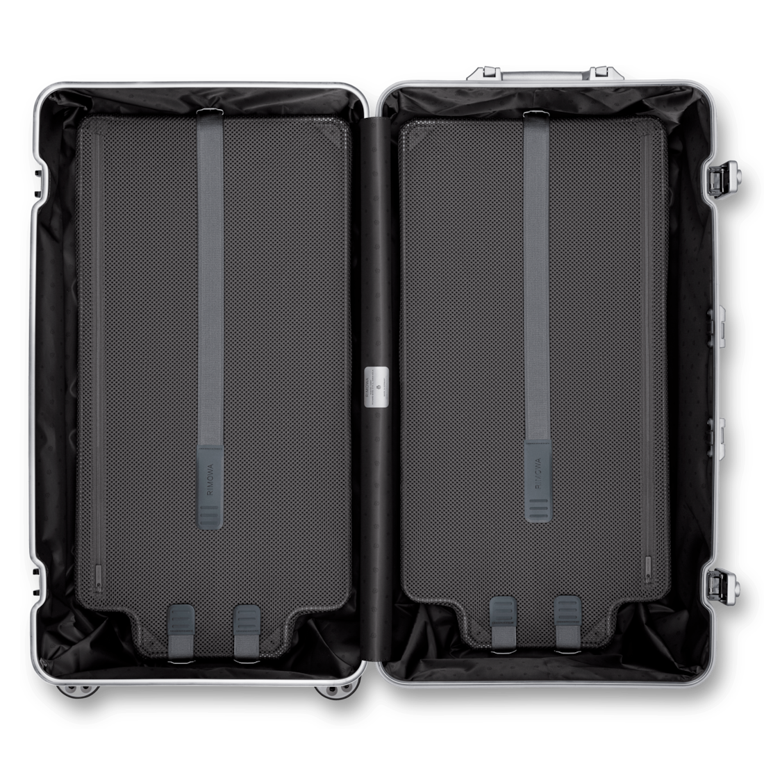 Ideal for 2 weeks or more of travel, the RIMOWA Original Trunk Plus in silver features several ingenious functionalities: