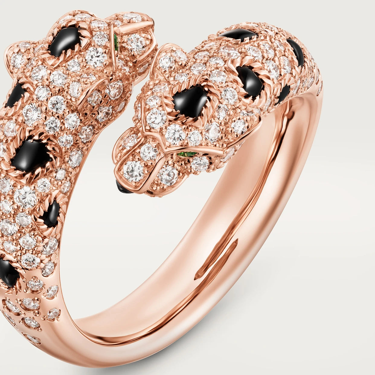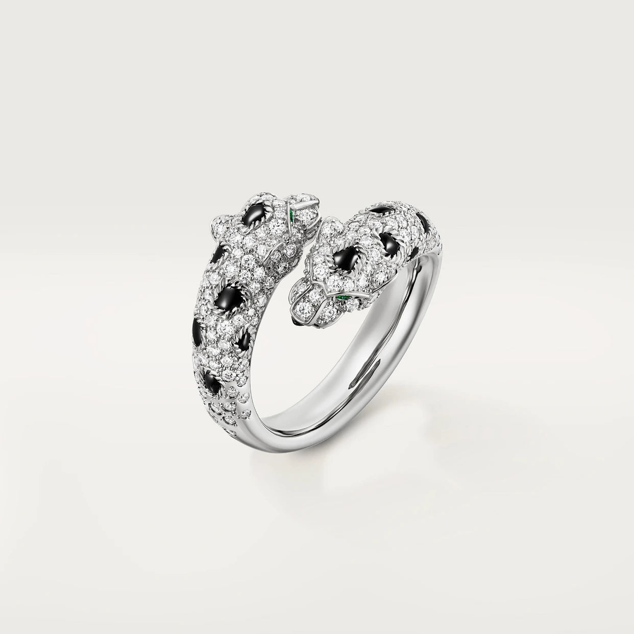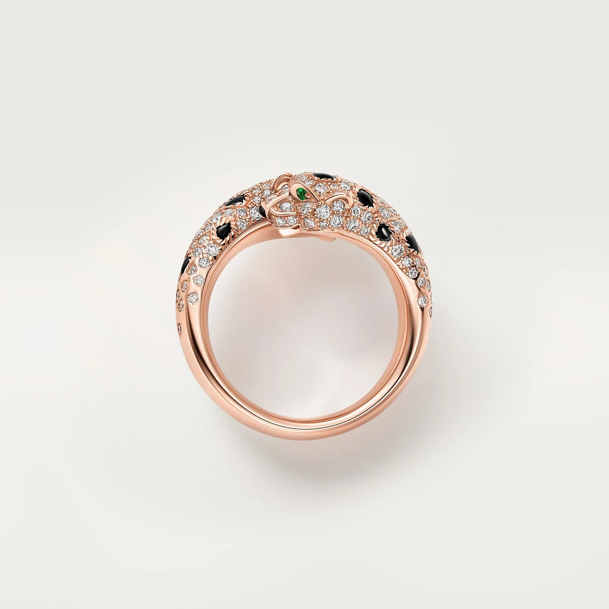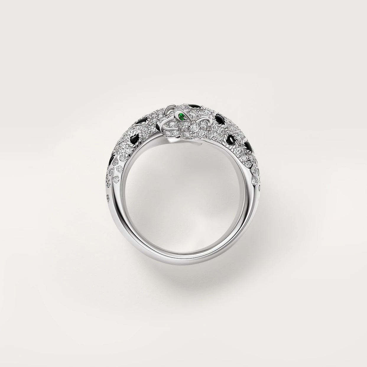 Panthère de Cartier ring, yellow gold 750/1000, onyx, set with 2 emeralds and 174 brilliant-cut diamonds totalling 0.92 carats (for size 52).