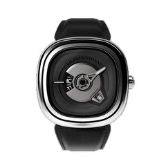 Strap: Black Genuine calf leather strap with black stitching and stamped SEVENFRIDAY in the back