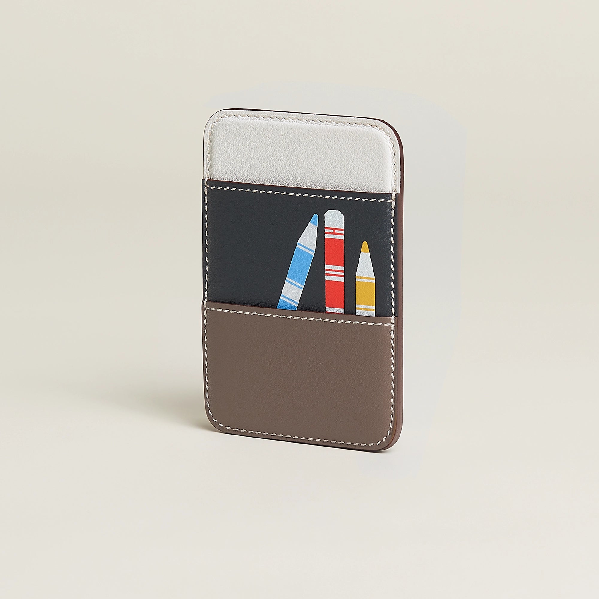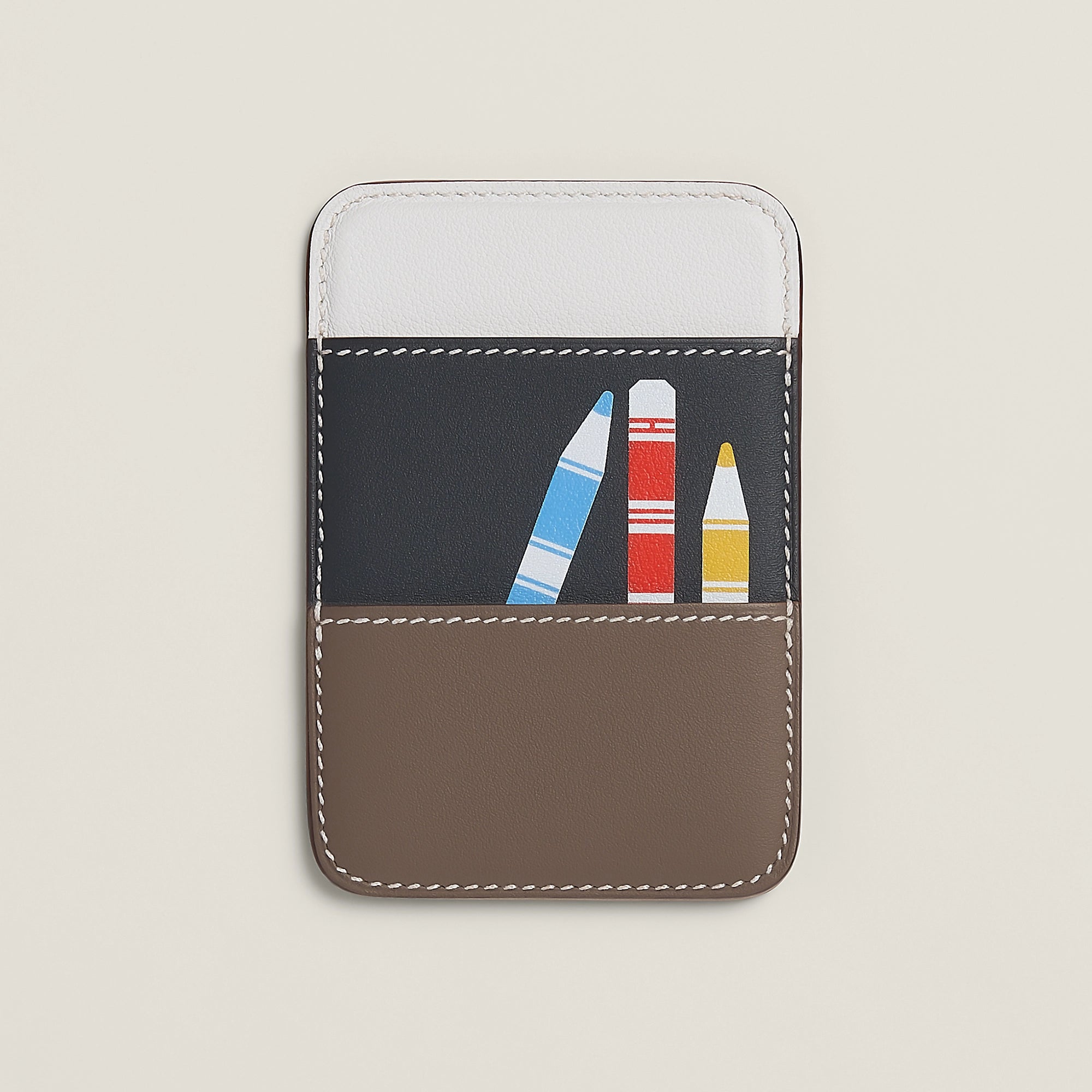 Pencils printed MagSafe card holder in Etoupe/Gris Misty/New White Swift calfskin.