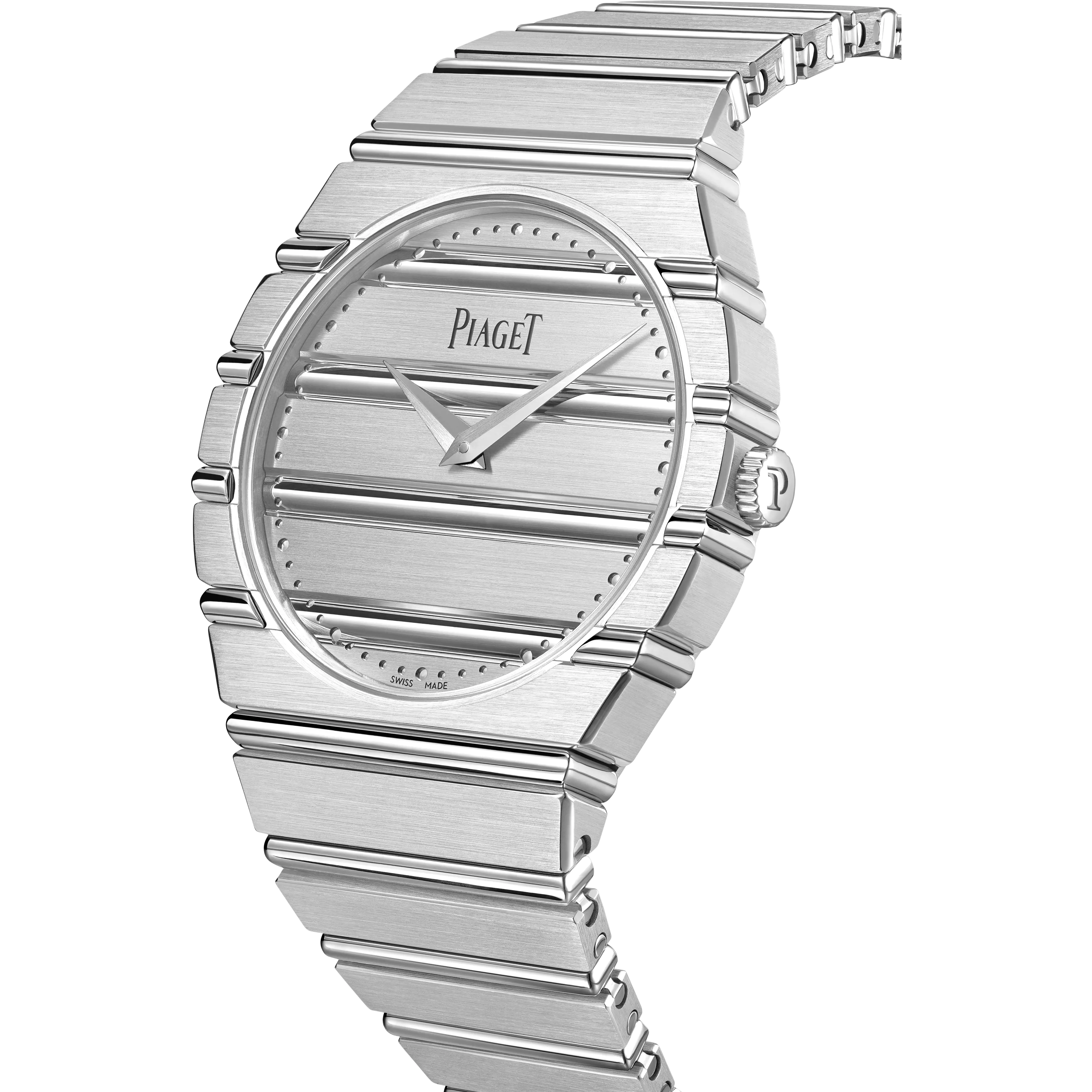 Piaget Polo 79 watch, 38mm. Rhodium finish 18K white gold case, dial and bracelet. Piaget signature alternation of gadroons and satin finished gold elements. Full integration of the bracelet into the case. Sapphire crystal case back. 1200P1 Manufacture automatic movement with a grey coated 22K gold micro-rotor.