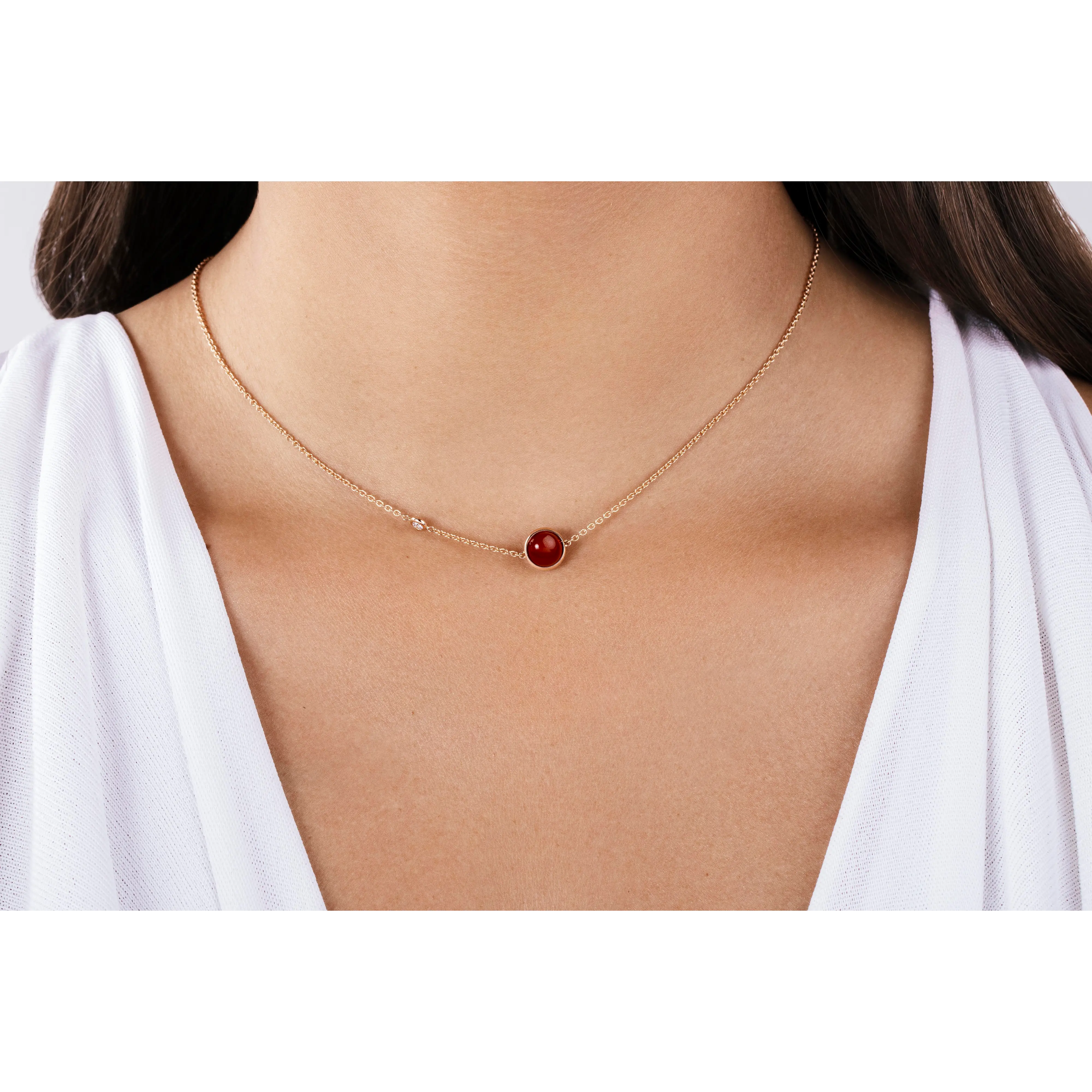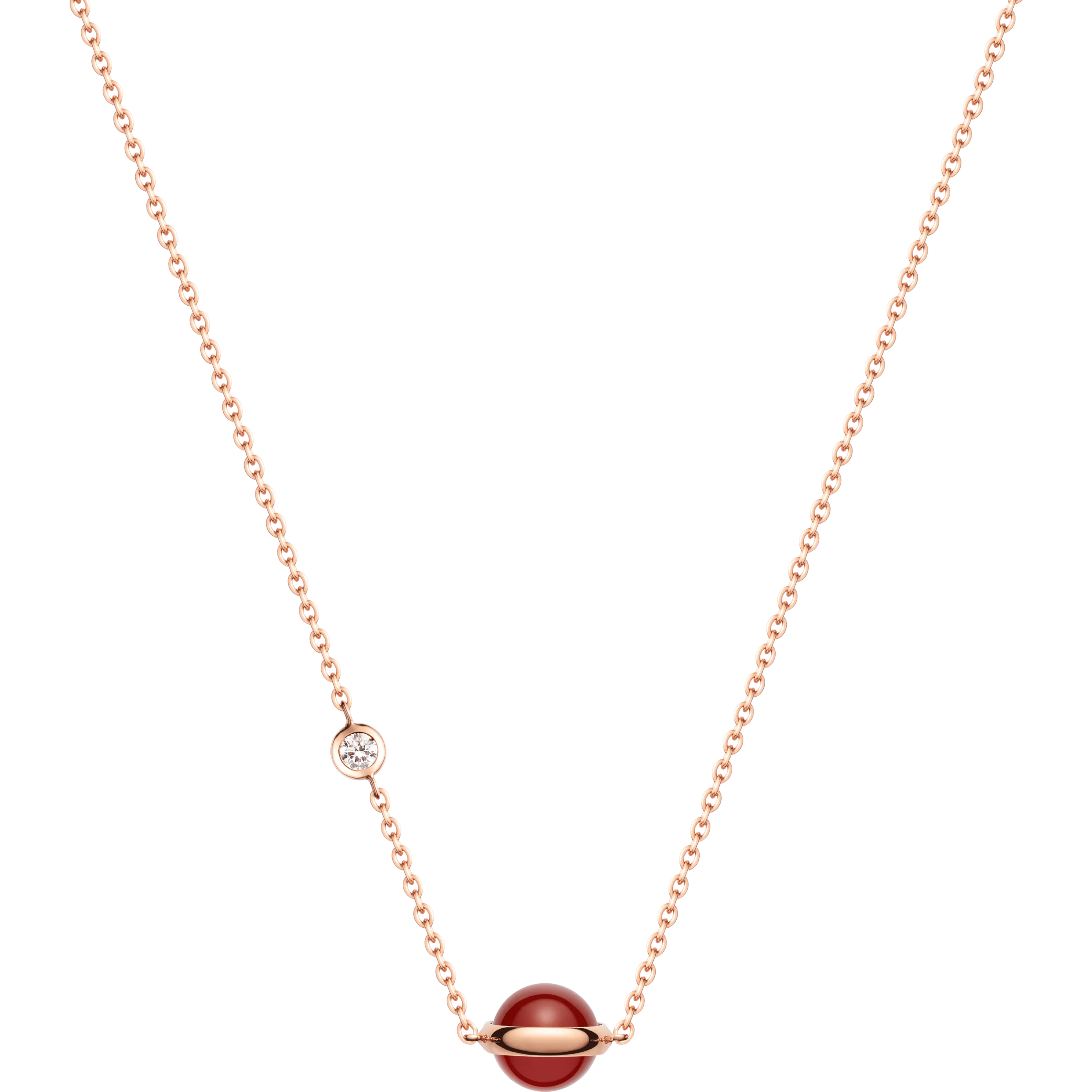 Possession pendant in 18K rose gold set with a brilliant-cut diamond (approx. 0.06 ct) and a carnelian bead.