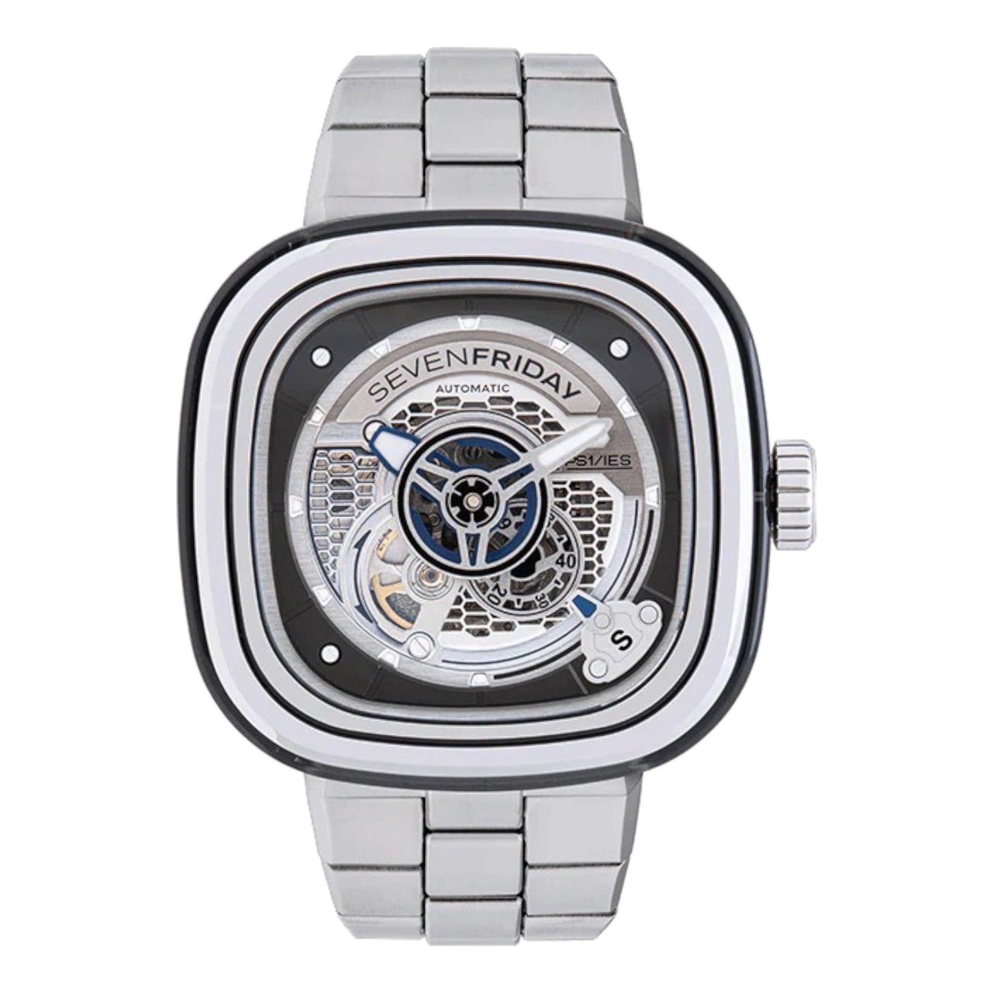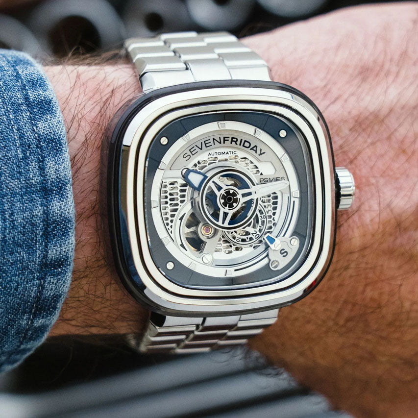 PS1/01M is the timeless PS1/01 with a factory fitted metal bracelet. The metal bracelet has been specifically designed in-house, in order to fit perfectly with our iconic case in terms of style, quality and comfort. The addition of the stainless steel bracelet to the PS1/01 turns it into a definitive statement piece.