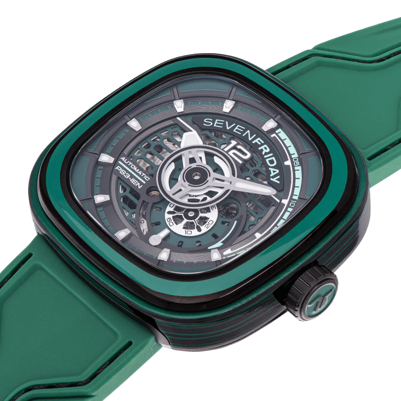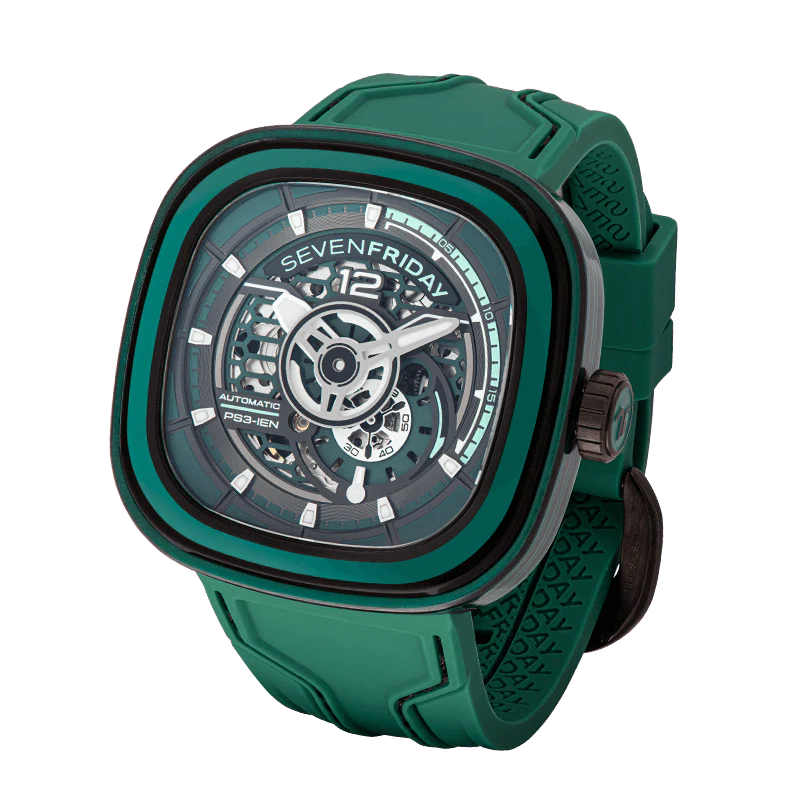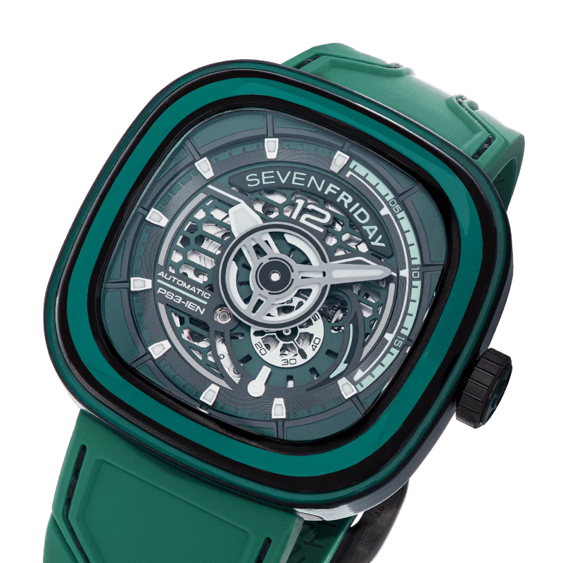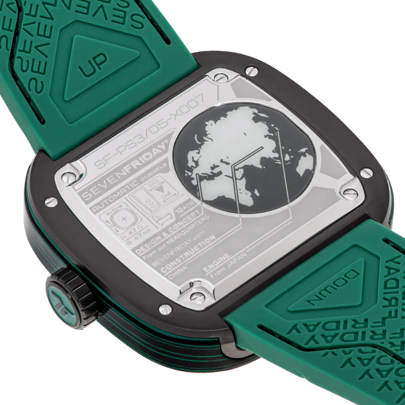 The new PS series offers a vibrant choice of three striking colors: PS3/03 in orange, PS3/04 in blue, and PS3/05 in green! Nestled in the more technical PS range, the watches’ animation ring is made of a special combination of carbon fibre and coloured resin, the latter matching the dial, strap colour and the Berlac filled bezel.