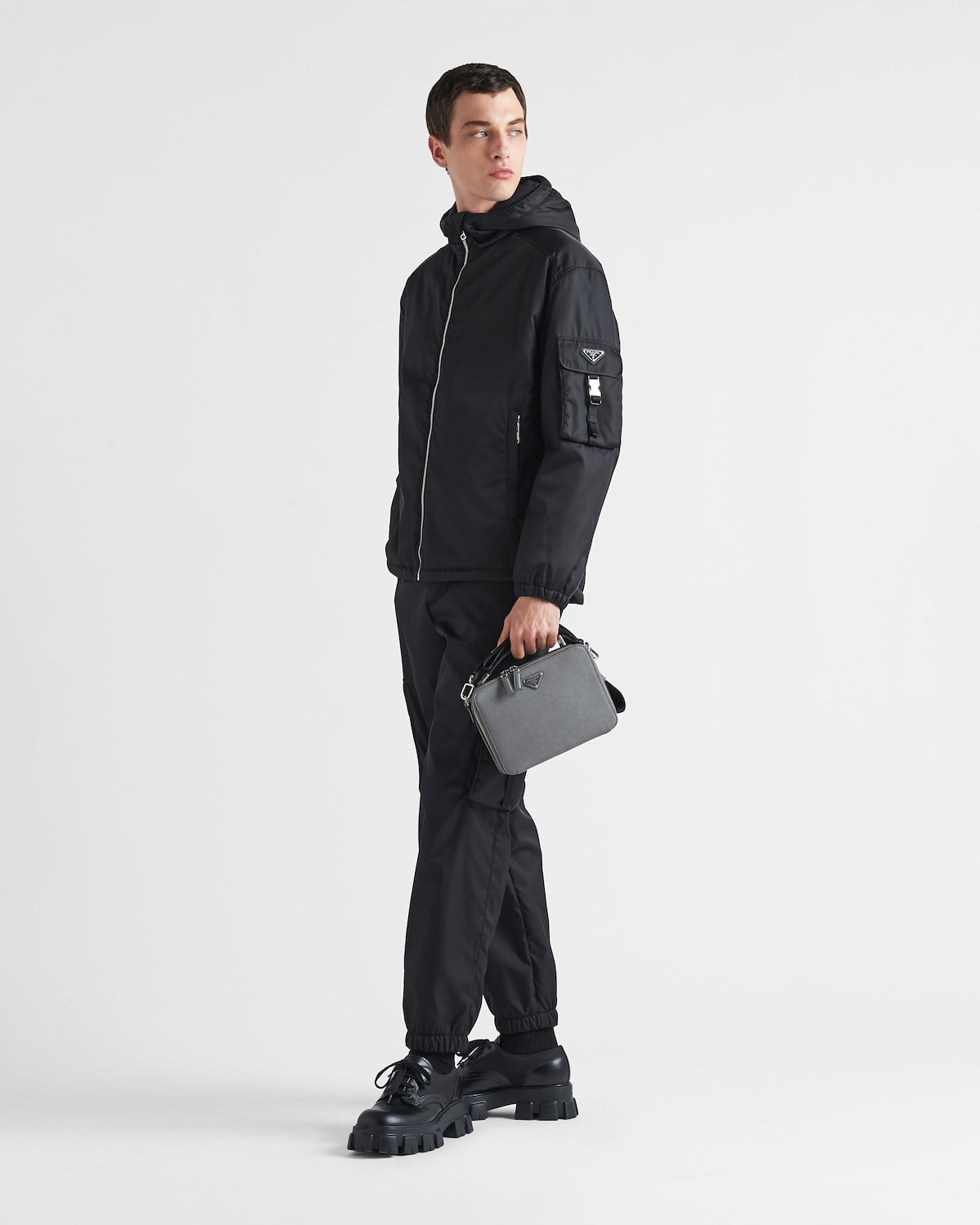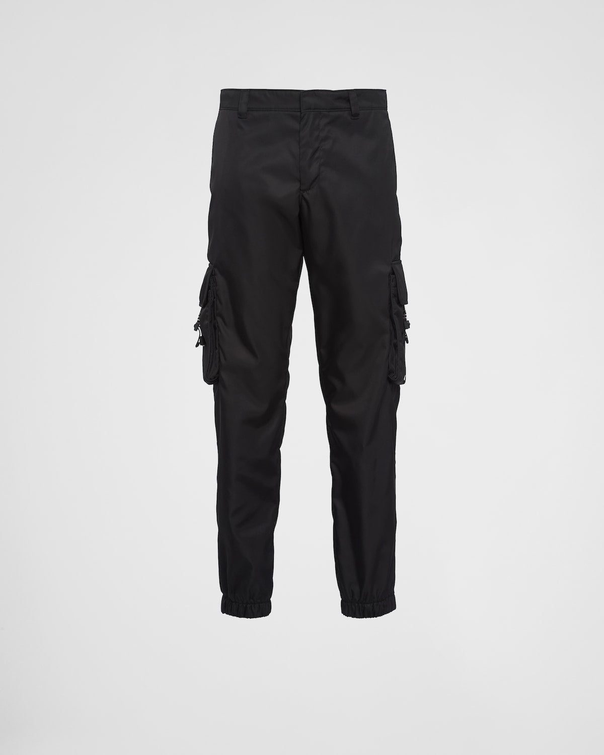 These pants decorated with the iconic enameled metal triangle logo are made of Re-Nylon: a regenerated nylon yarn (ECONYL®) produced from recycled and purified plastic trash collected in the ocean, fishing nets and textile fiber waste.