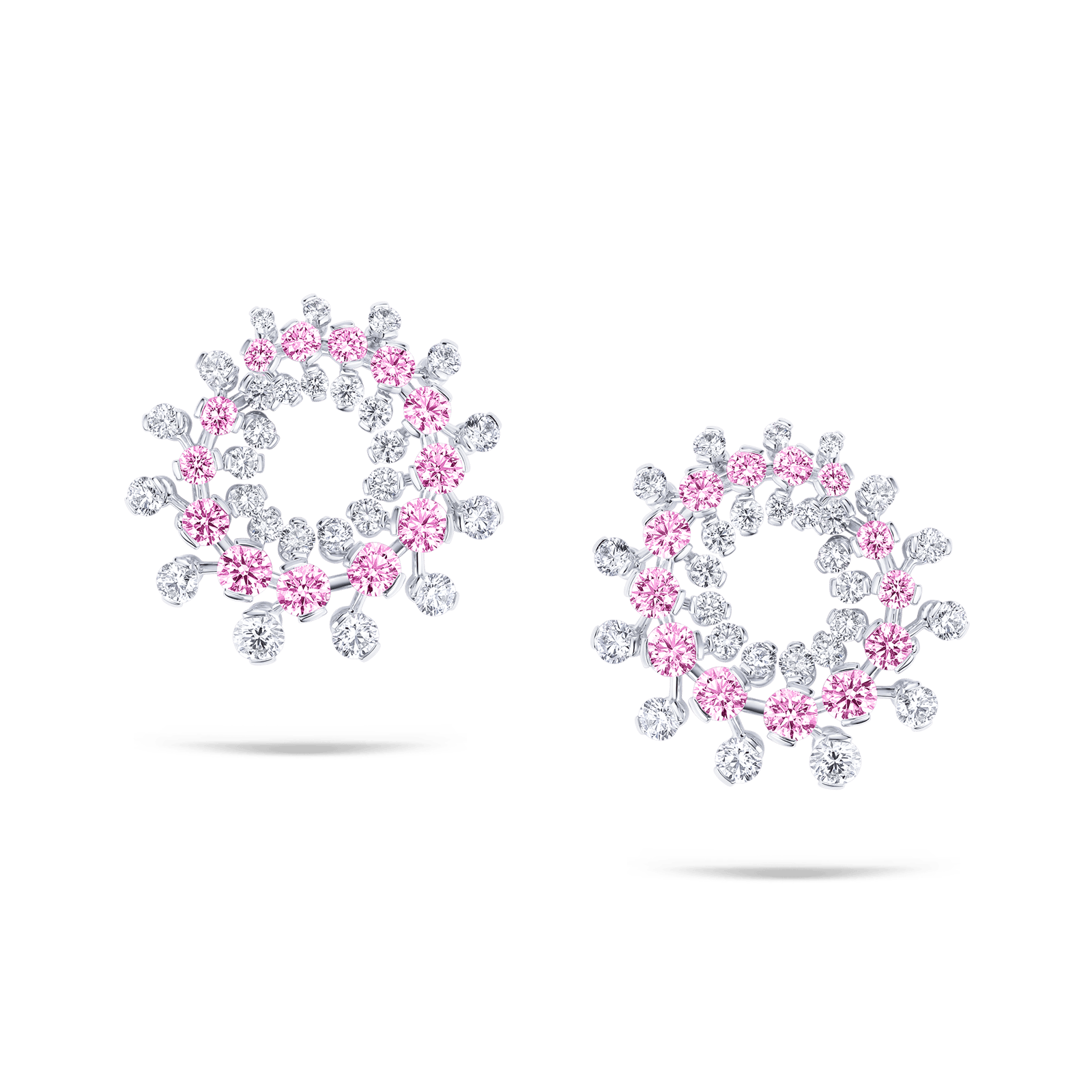 Riviera Creole earrings with 9.07ct pink sapphires and 5.57ct white diamonds, set in 18ct white gold