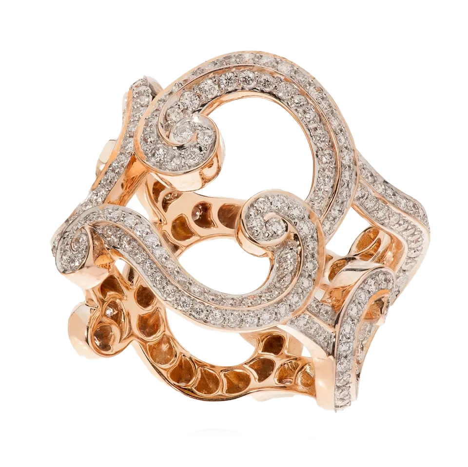 Rococo Lace Diamond Rose Gold Ring features round white diamonds, set in 18 karat rose gold. The ring is 17mm in width.
