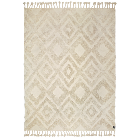Copenhagen rug is hand-woven in cotton. The base and the pile is in white mercerised cotton. The pile adds a shaggy look to this cotton rug.