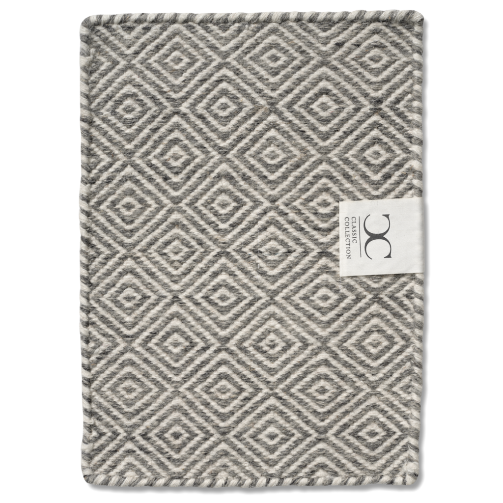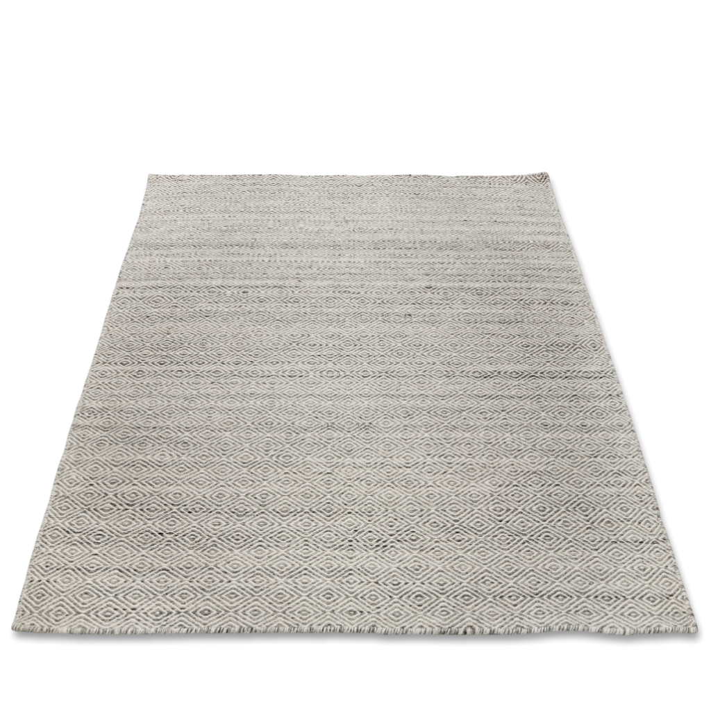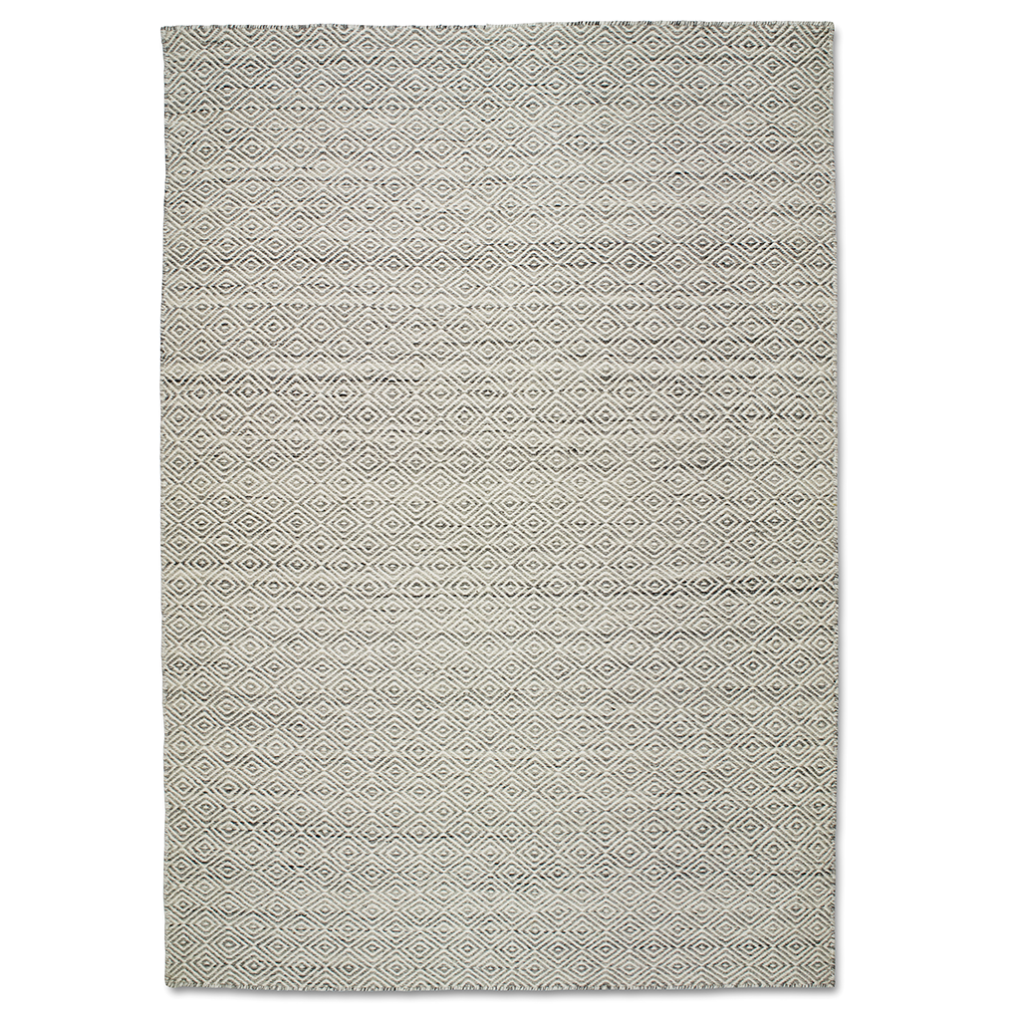 Goose Eye 140x200 Gray/White, a wool rug available in several different colors and sizes. The clean and classic goose eye pattern that adorns the carpet can be thankfully combined with other colors and designs. The Goose Eye rug is durable and dirt repellent, which makes the carpet suitable for most environments. Ideal as a carpet under the dining table, hall mat or children's mat. The wool's natural fats make the carpet resist dirt and stains effectively. Any dirt settles on the surface and is advantageously removed by vacuuming or airing.