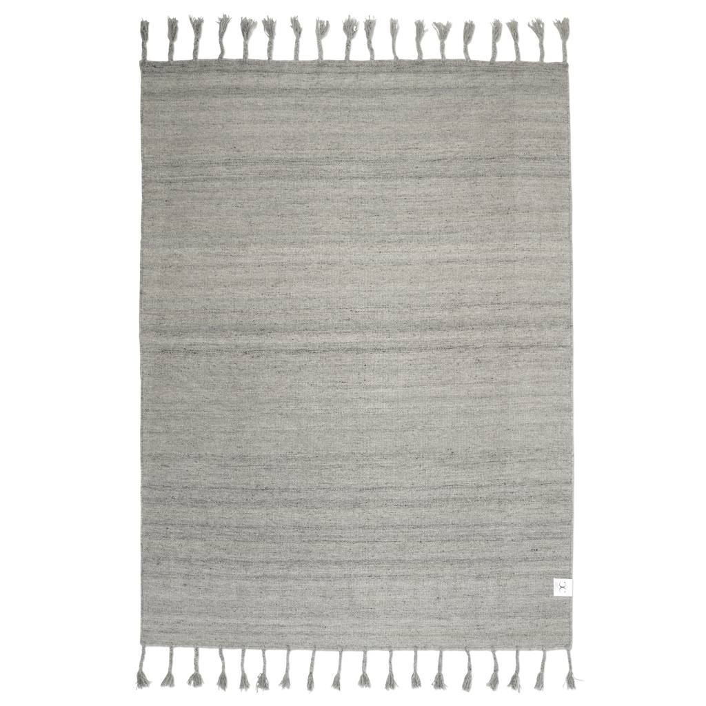 Plain Silver, a wool mat available in a variety of colors and sizes. A sober mat with wicker tassels on the short sides that can be gratefully combined with other colors and designs. Carpet Plain is durable and dirt repellent, which makes the carpet suitable for most environments. Ideal as a mat under the dining table, hallway mat or children's mat. The wool's natural fats make the carpet resist dirt and stains effectively. Any dirt settles on the surface and is advantageously removed by vacuuming or airing.