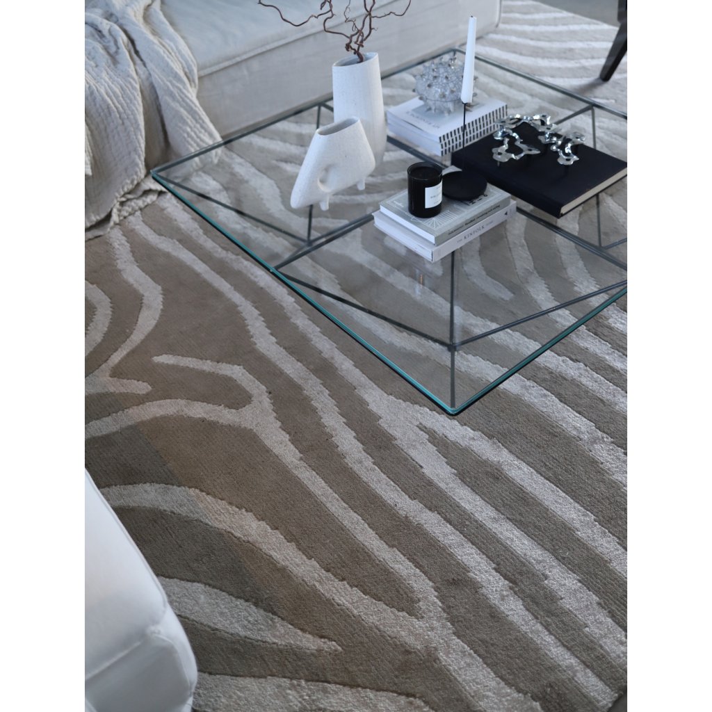 Zebra Greige/Linen is a handknotted rug in wool/bamboo silk. This zebra -patterned pile rug adds class and beauty to every room.