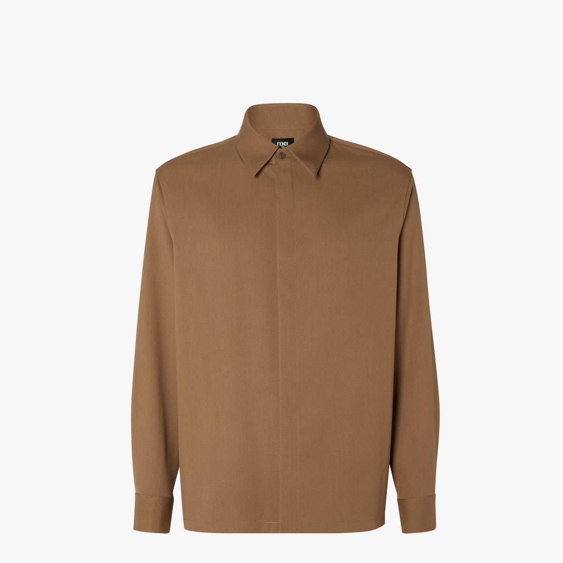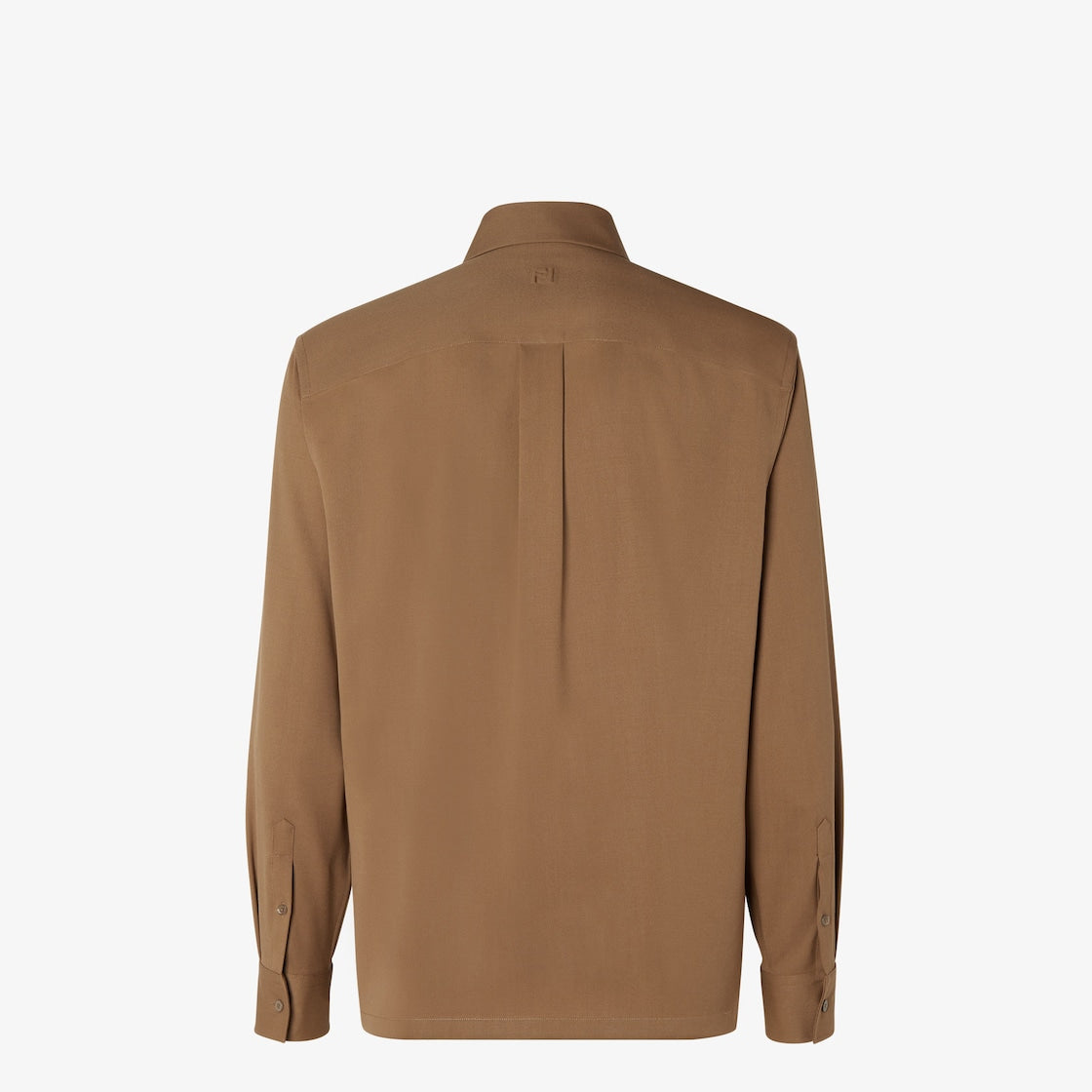 Long-sleeved shirt. Front fastening with concealed buttons. Made from rust-coloured wool gabardine. Embellished with embossed FF on the back of the collar.