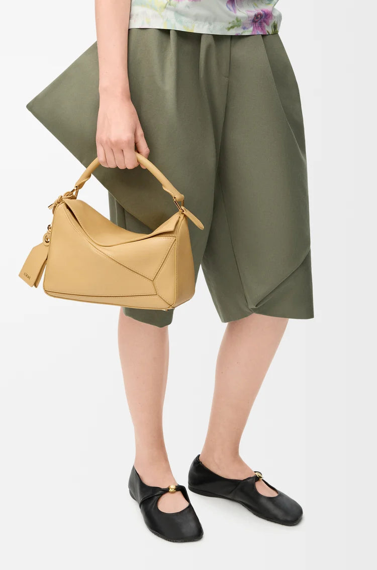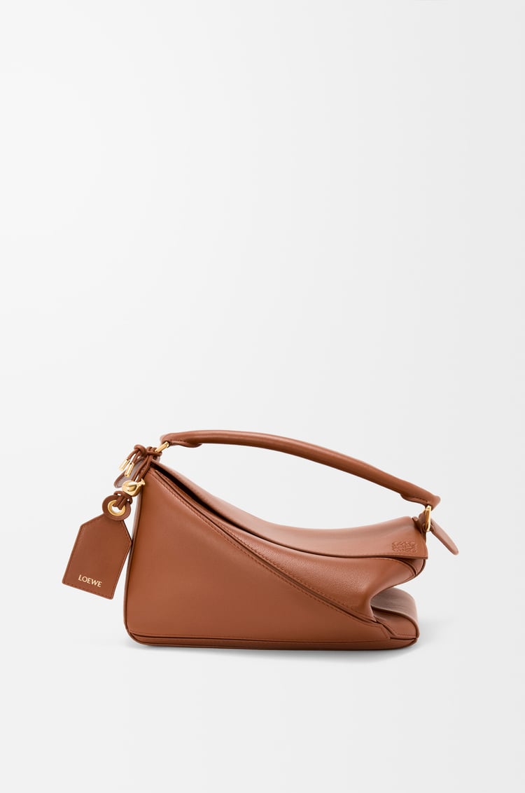 The Featherlight Puzzle is defined by its distinctive geometric lines and its cuboid form. The supple featherlight nappa makes the bag soft and slouchy.