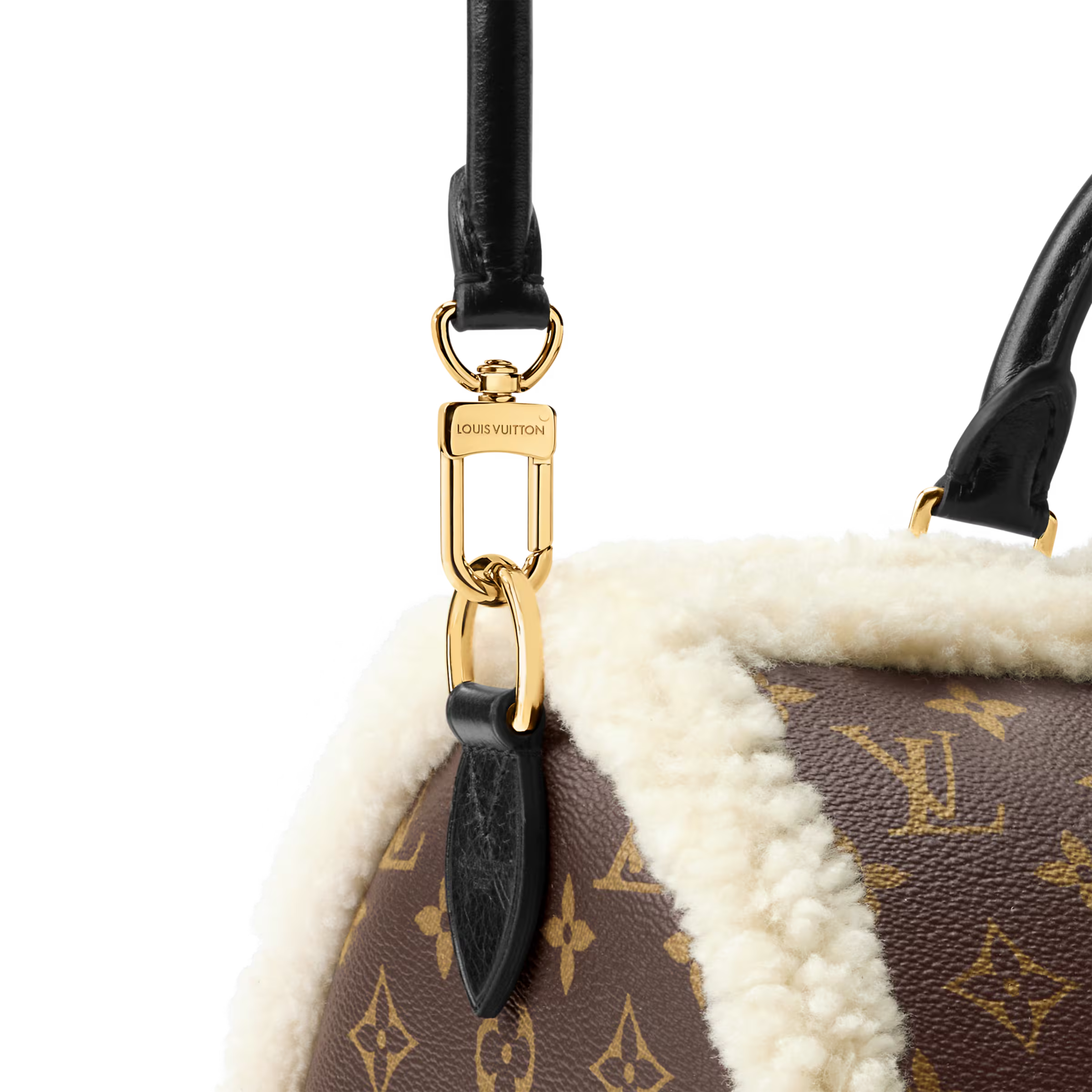 Available for this season only, this Speedy Soft 30 Teddy bag is a chic après-ski option. It is made from Monogram canvas and trimmed with cosy shearling, adding a nostalgic touch. The exclusive design is embellished with a signature name tag, paying tribute to the House’s iconic travel heritage and craftsmanship. It is topped with a hand-rolled Toron handle.