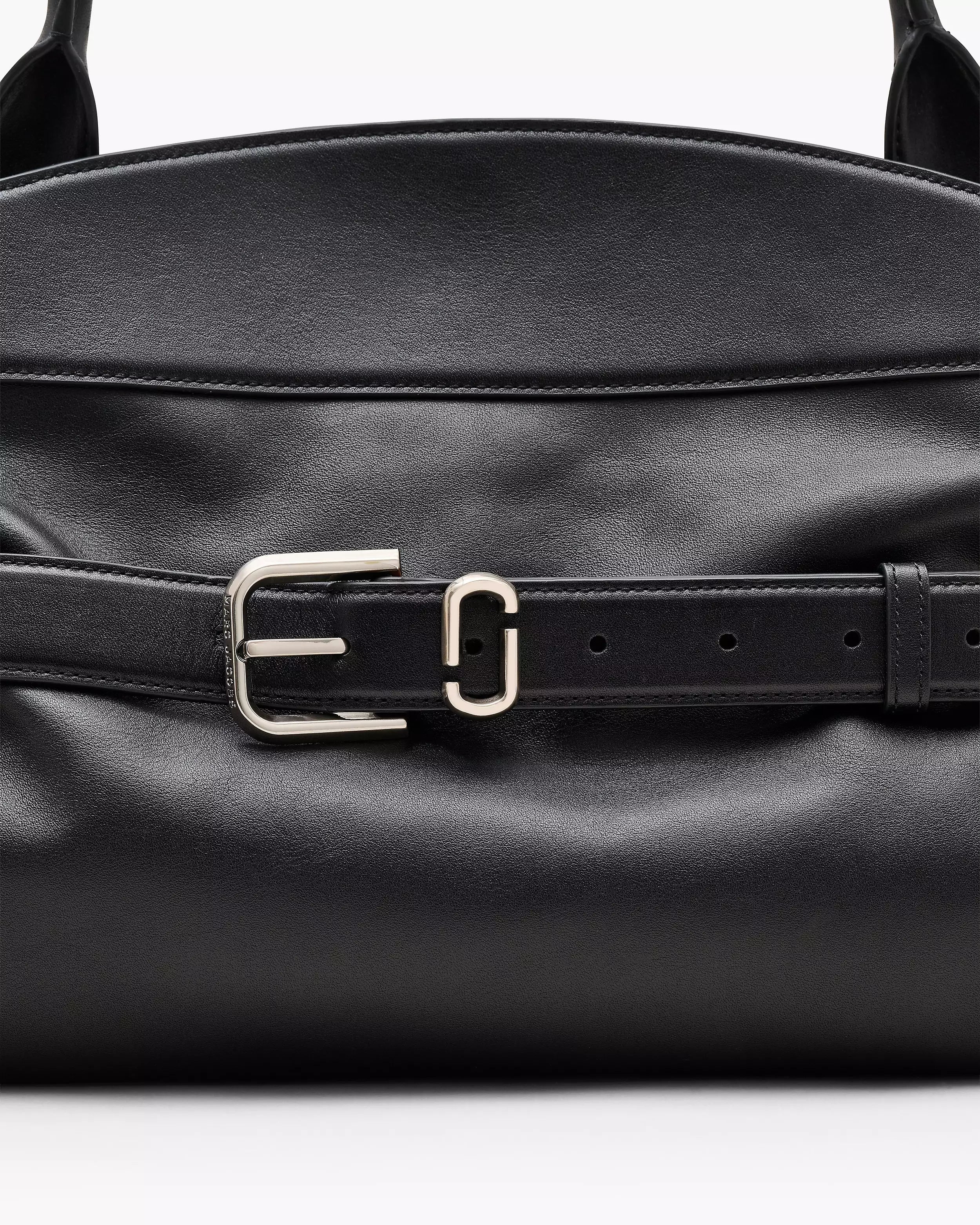 An effortlessly chic carryall, the Dakota Satchel merges utility with quiet sophistication. Crafted in smooth leather, it’s defined by a fixed J Marc logo belt - a nod to the Marc by Marc Jacobs archival belt collection. Thoughtfully designed, it features a magnetic closure, two interior compartments and pockets that speak to everyday practicality. Metal feet ground the design, while it’s shoulder strap adds a sculptural finish.