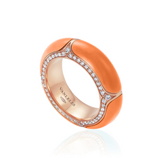 Ring crafted in 18K Rose Gold, White Diamonds and Coral