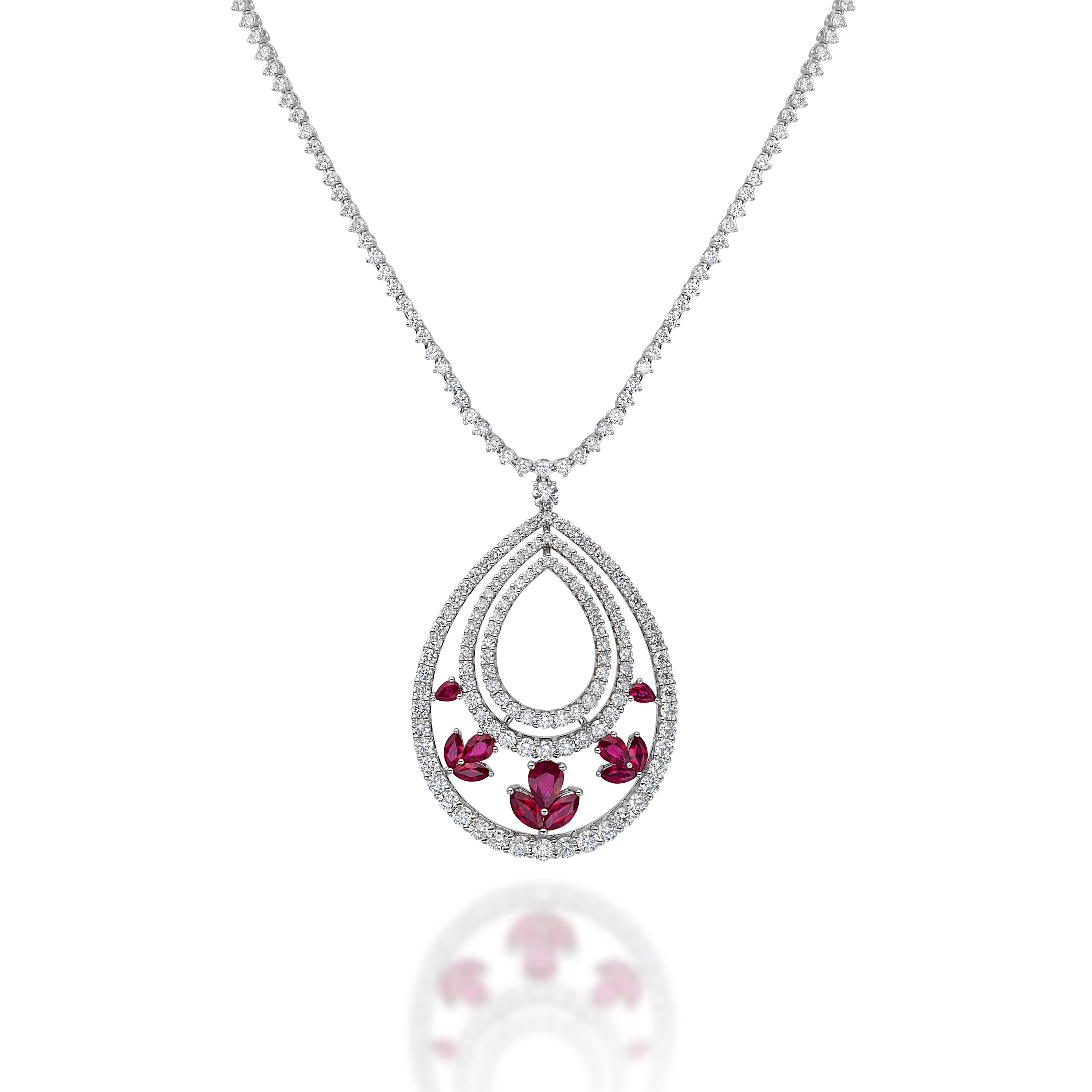 Timeless necklace with white diamonds and rubies set in 18K white gold.