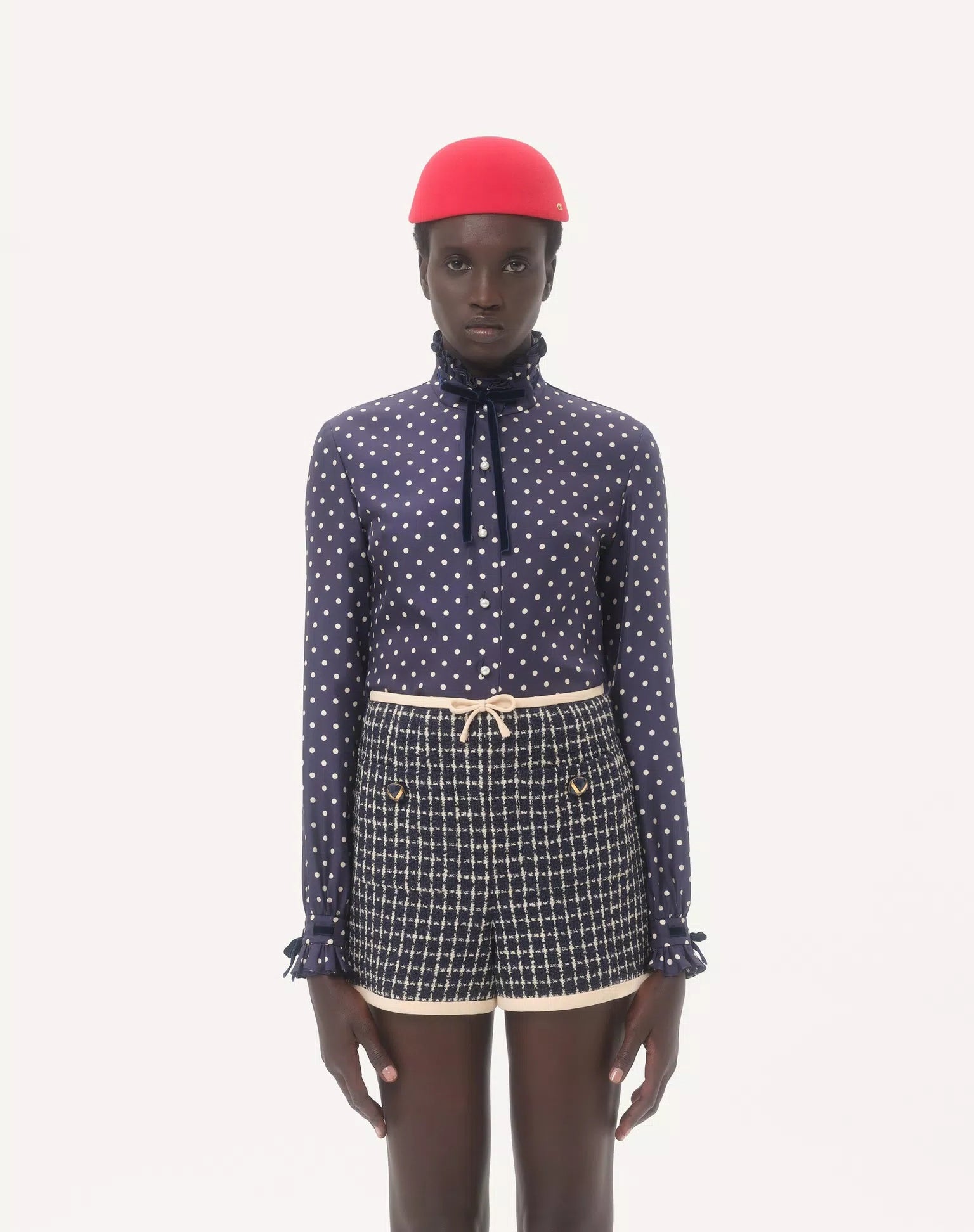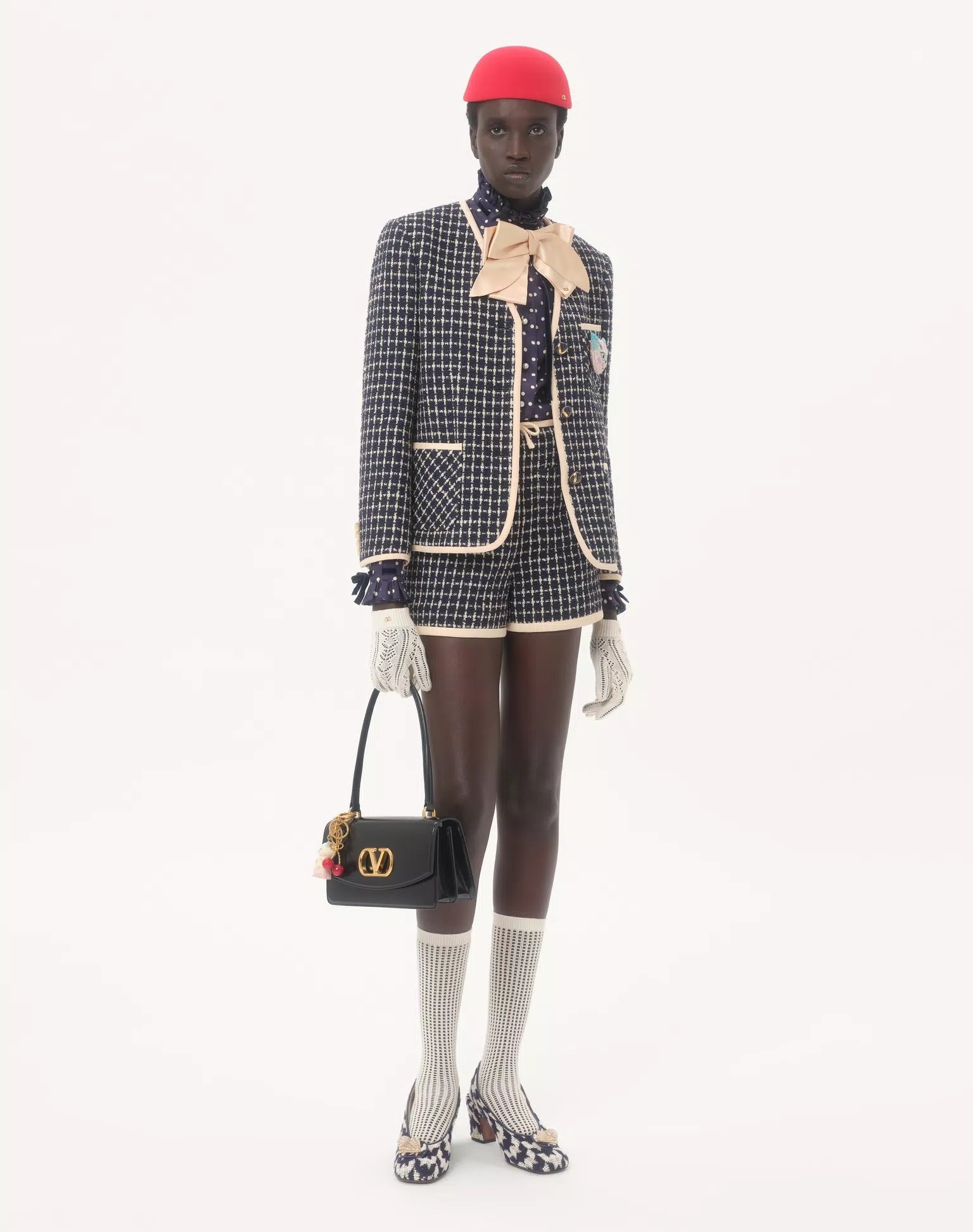 The look of the model is completed by a Valentino Garavani Vain Bag and Valentino Garavani Adamantine Shoes.